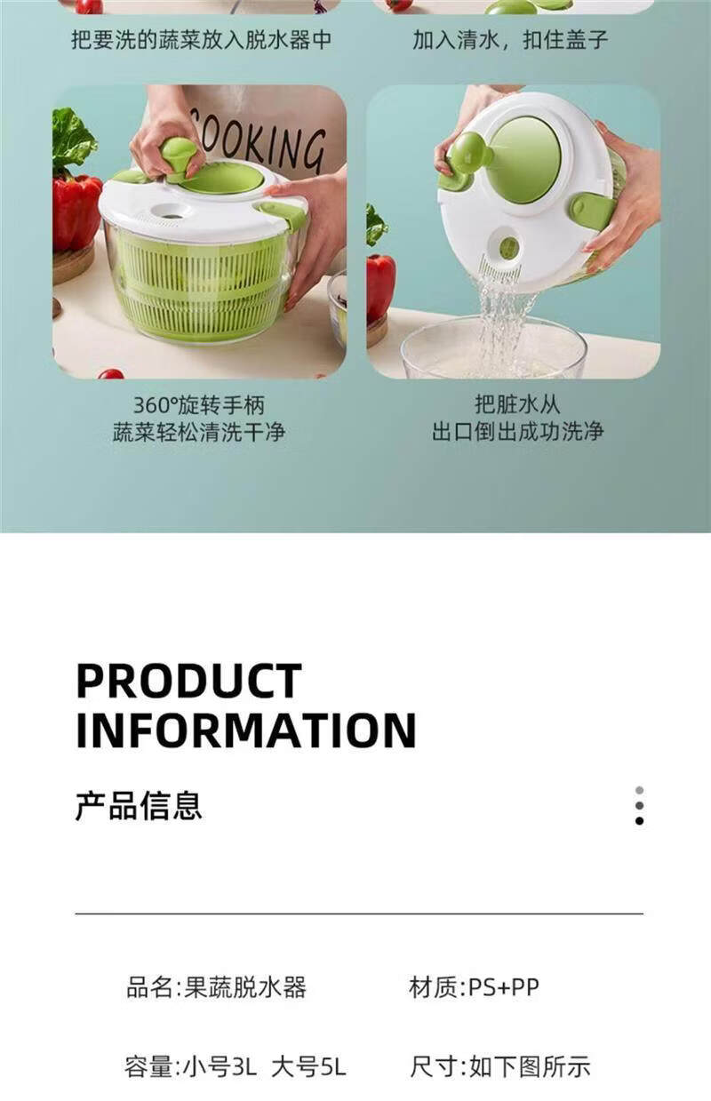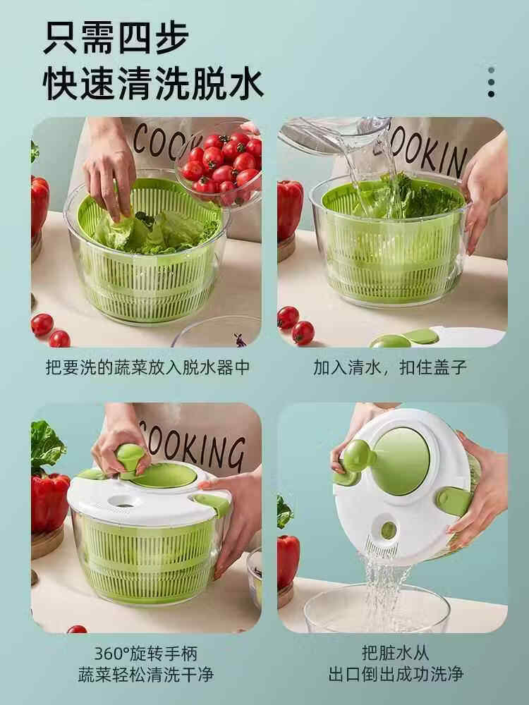 Tuojin vegetable dehydrator, household water-draining artifact, draining and washing vegetable basket, small 3L cream white, multi-functional water-draining device_salad plate