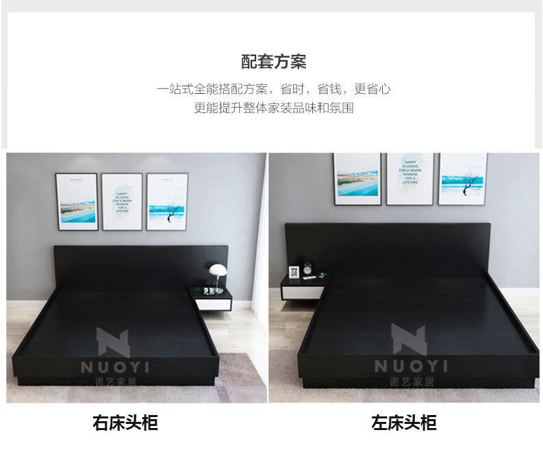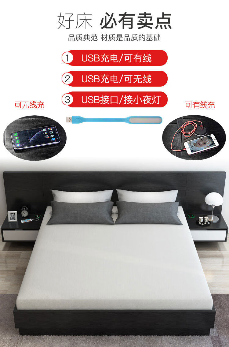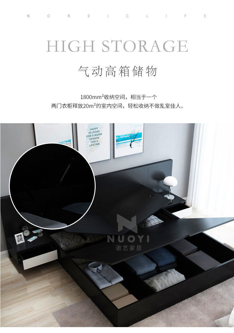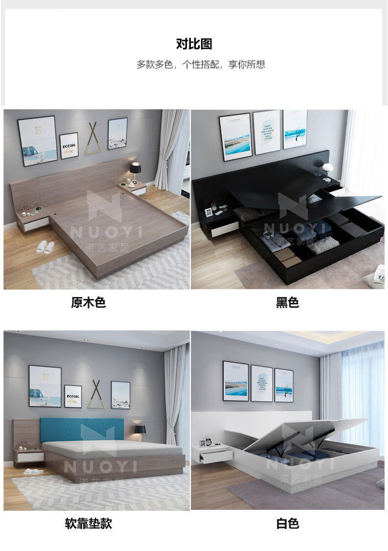 Bokai Painted Japanese Tatami Bed Modern Simple 1815m Box Double Bed Nordic Storage Storage Suspended Bed Customized 1500mm*1900mm Bed + Bedside Table x2 Assembled Box Bed