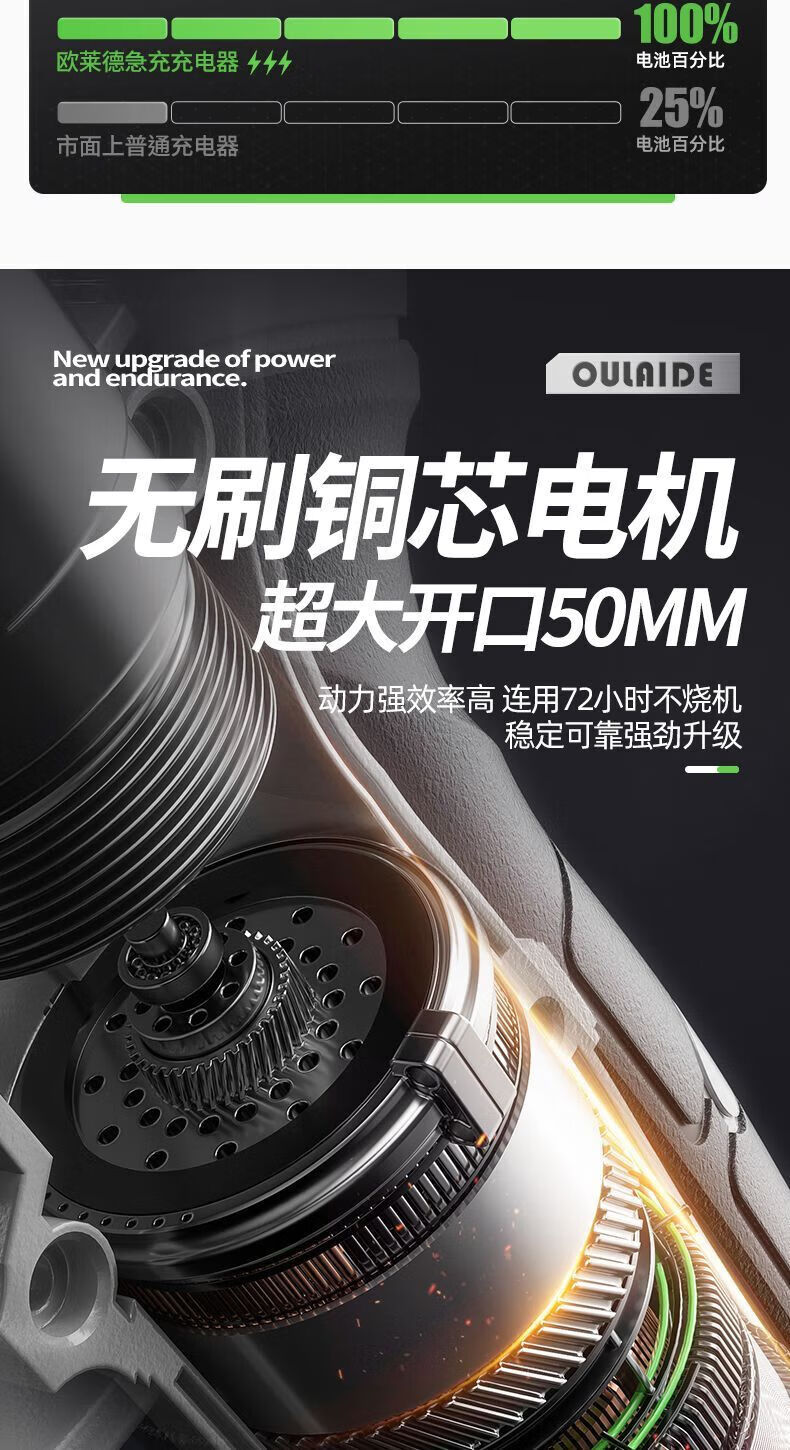 OLED Germany OLED 21V brushless rechargeable electric hammer industrial grade lithium impact drill electric pick electric drill three-purpose multi-function 21V brushless rubber-coated model 5 cells one battery one charge 2.0Ah