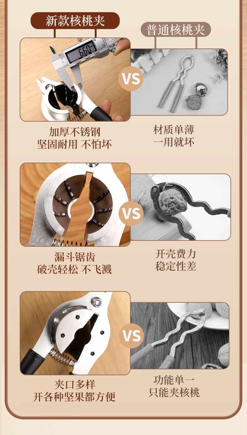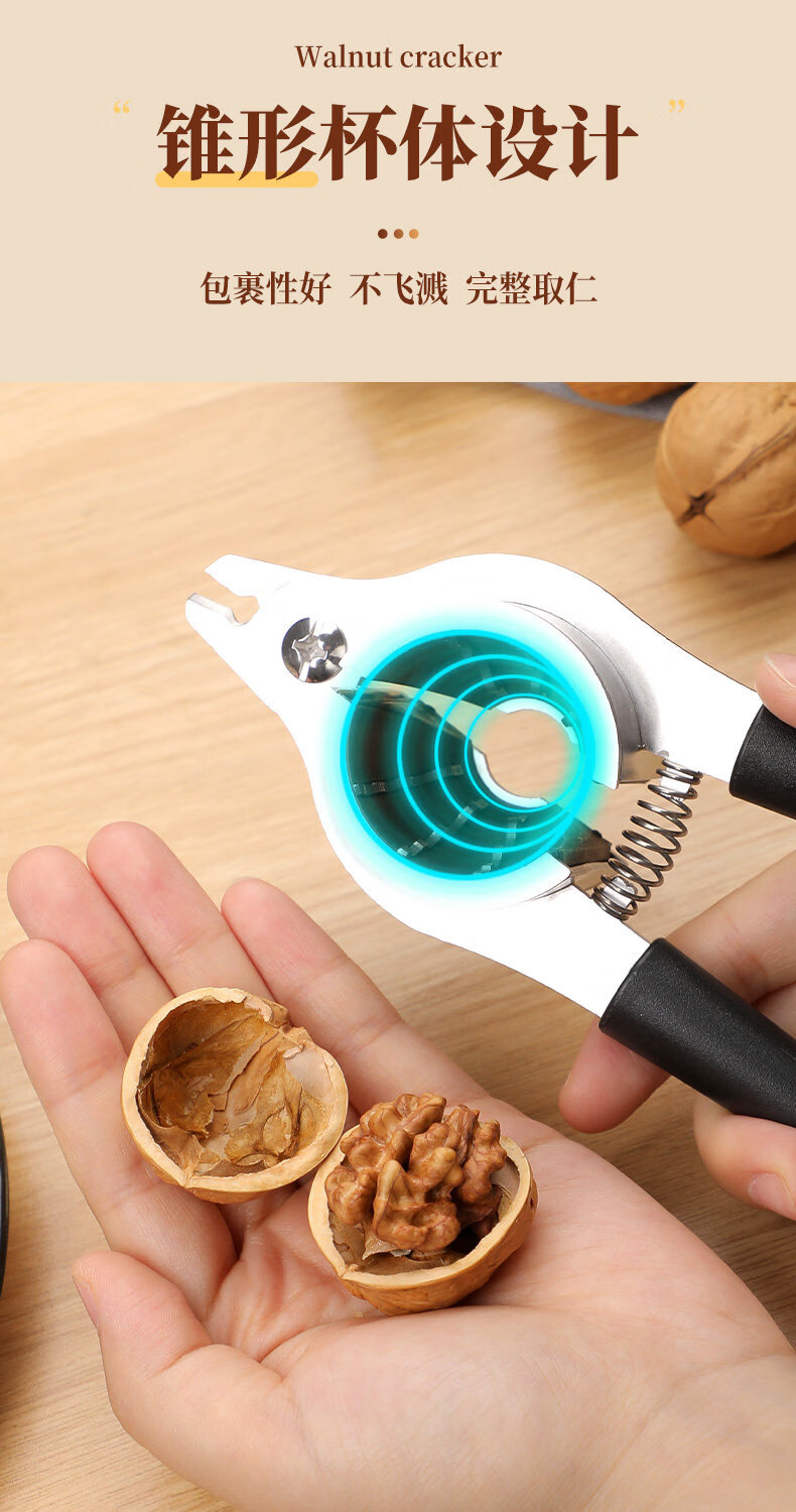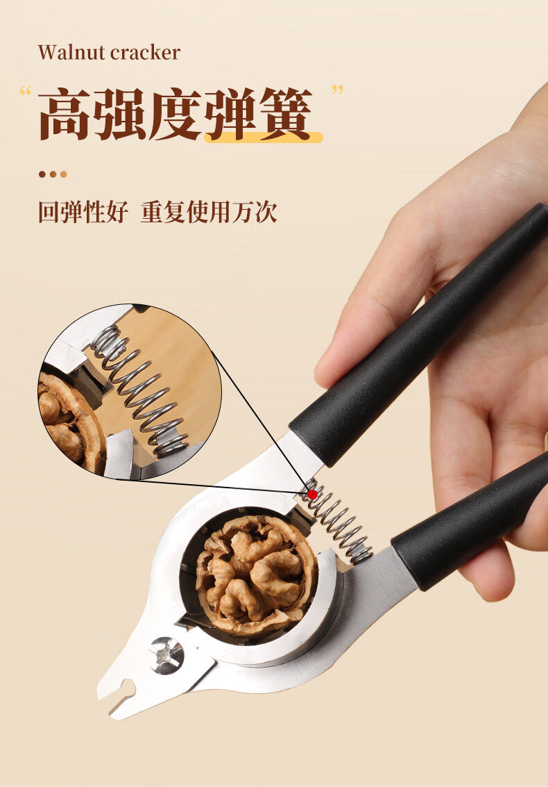 Olevo German imported quality household stainless steel walnut shell opener new labor-saving pecan clamping pliers special for opening walnuts thickened stainless steel walnut clamp coffee color