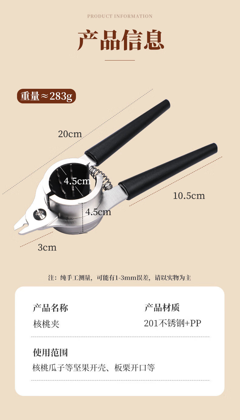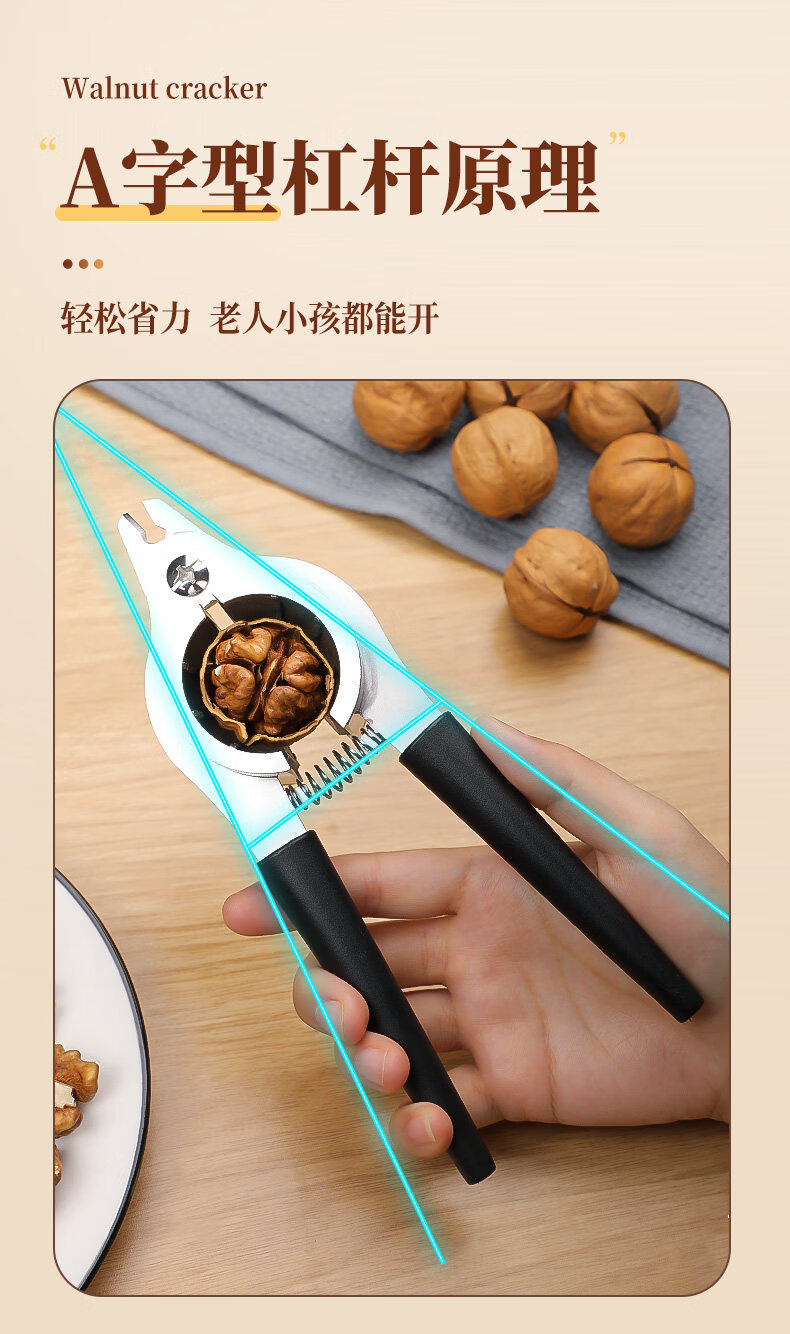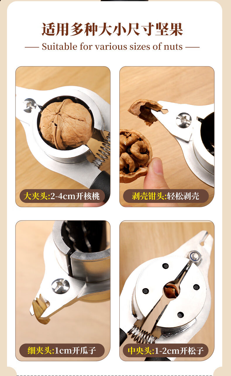 Olevo German imported quality household stainless steel walnut shell opener new labor-saving pecan clamping pliers special for opening walnuts thickened stainless steel walnut clamp coffee color