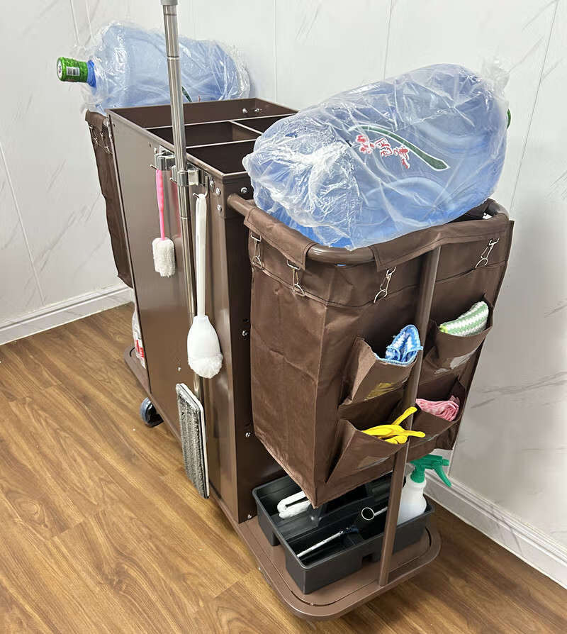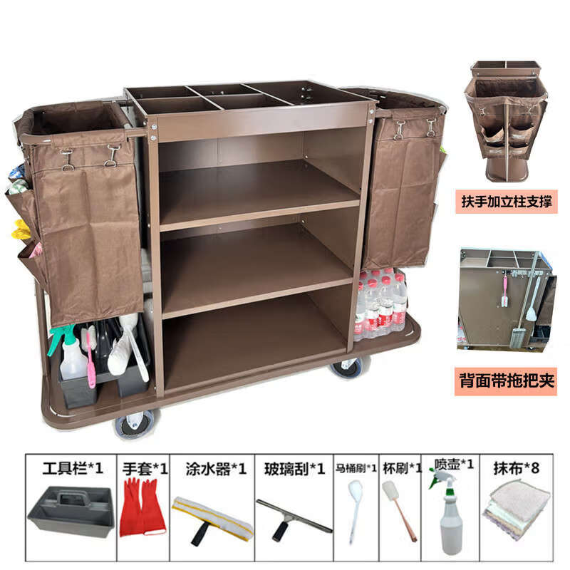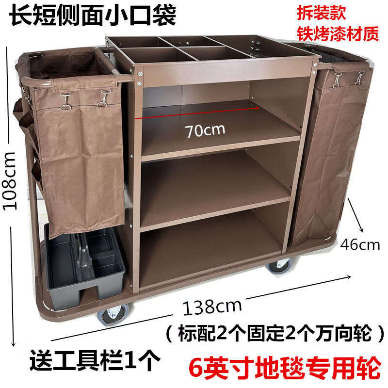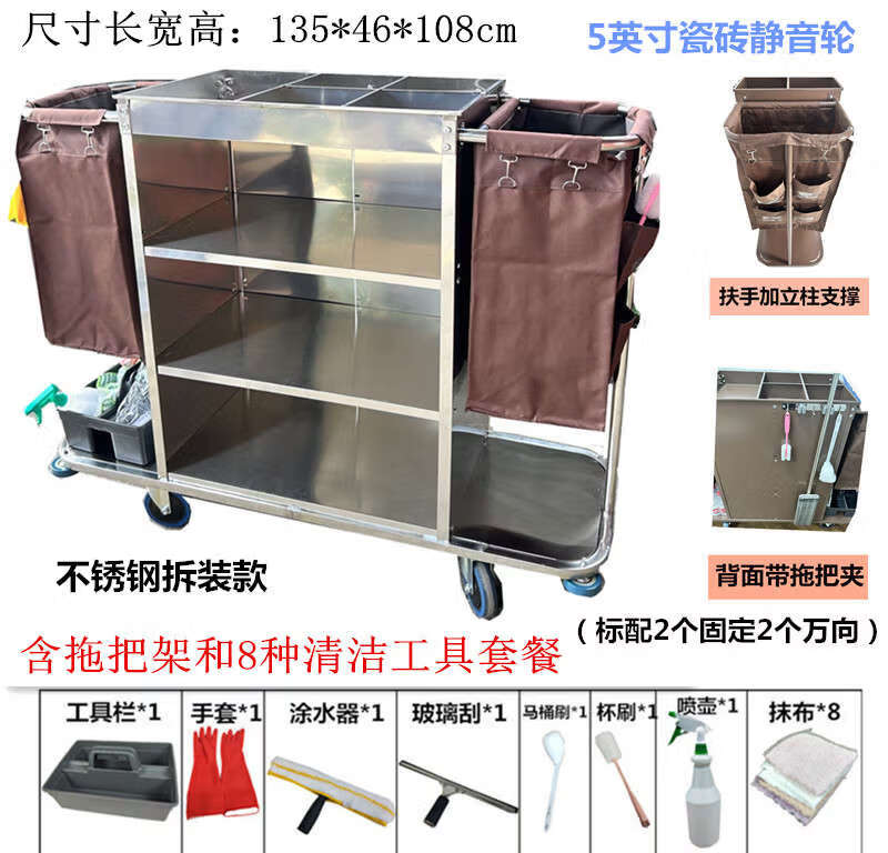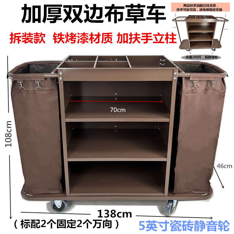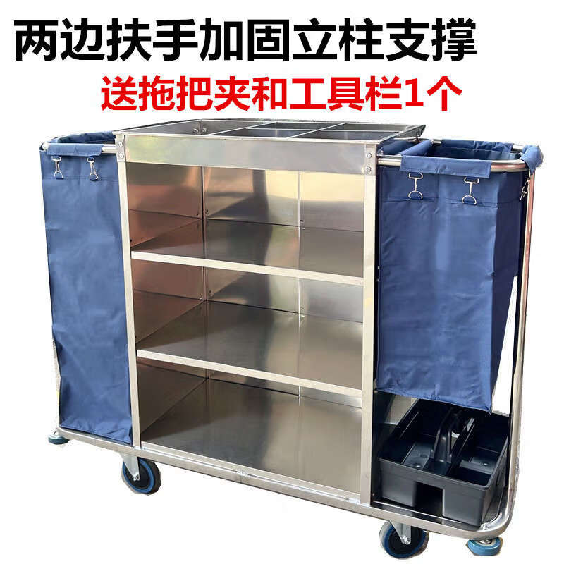 Yusenyi Room Service Car Silent Wheel Work Cart Directional Wheel Sanitary Cleaning Linen Cart Extra Thick Bilateral (5-inch Silent Tile + 1 Mop Rack)