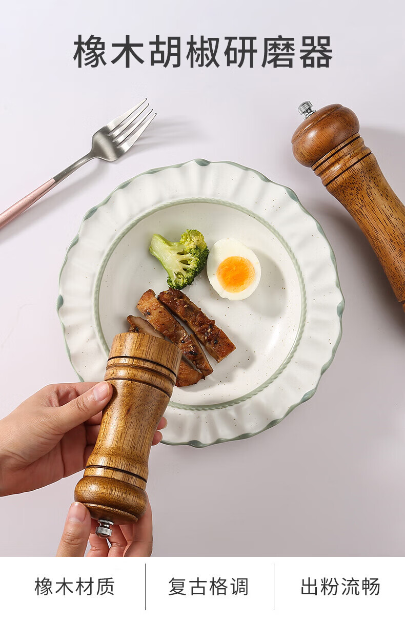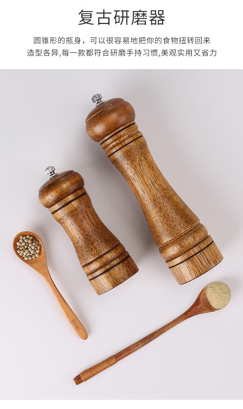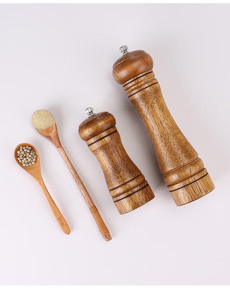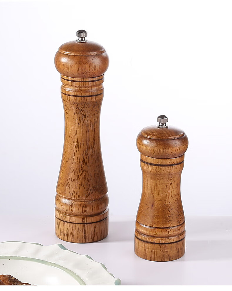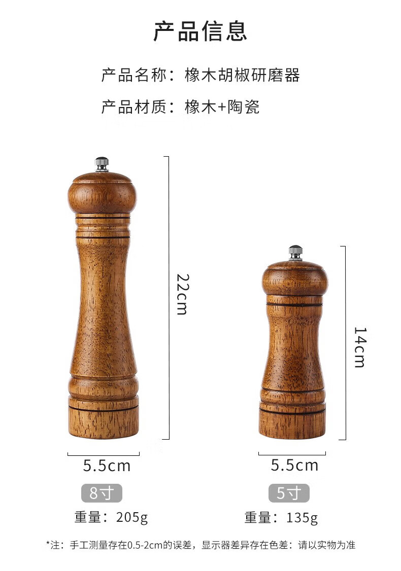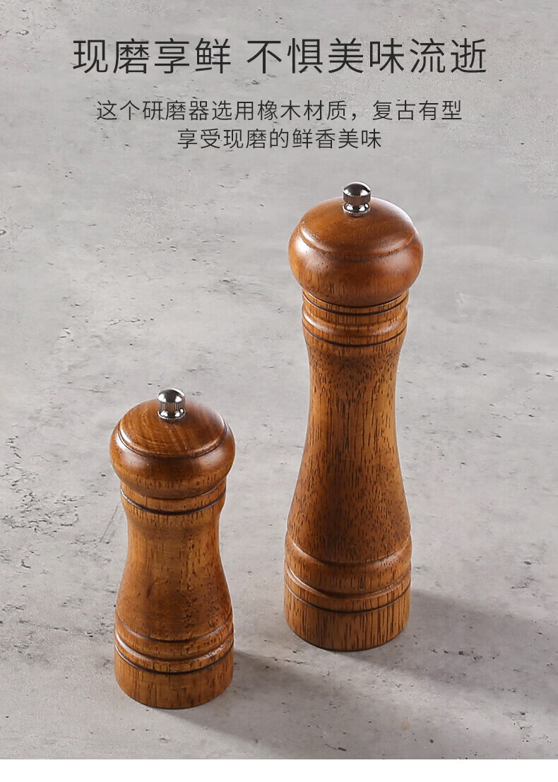 He Jiagong oak pepper grinder kitchen household seasoning bottle wooden retro creative black pepper grinder manual oak grinder 5 inches