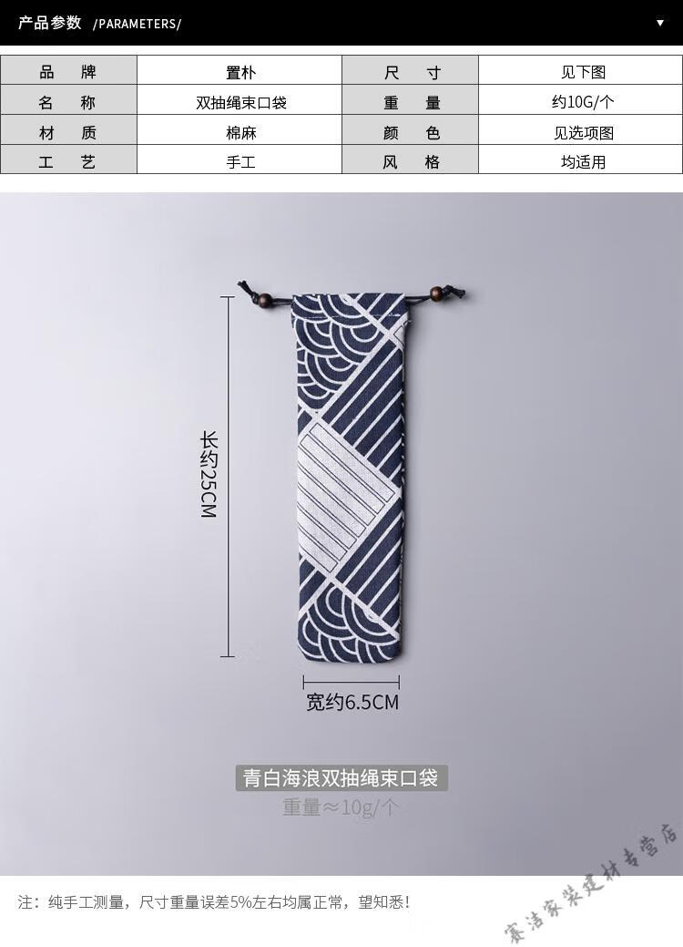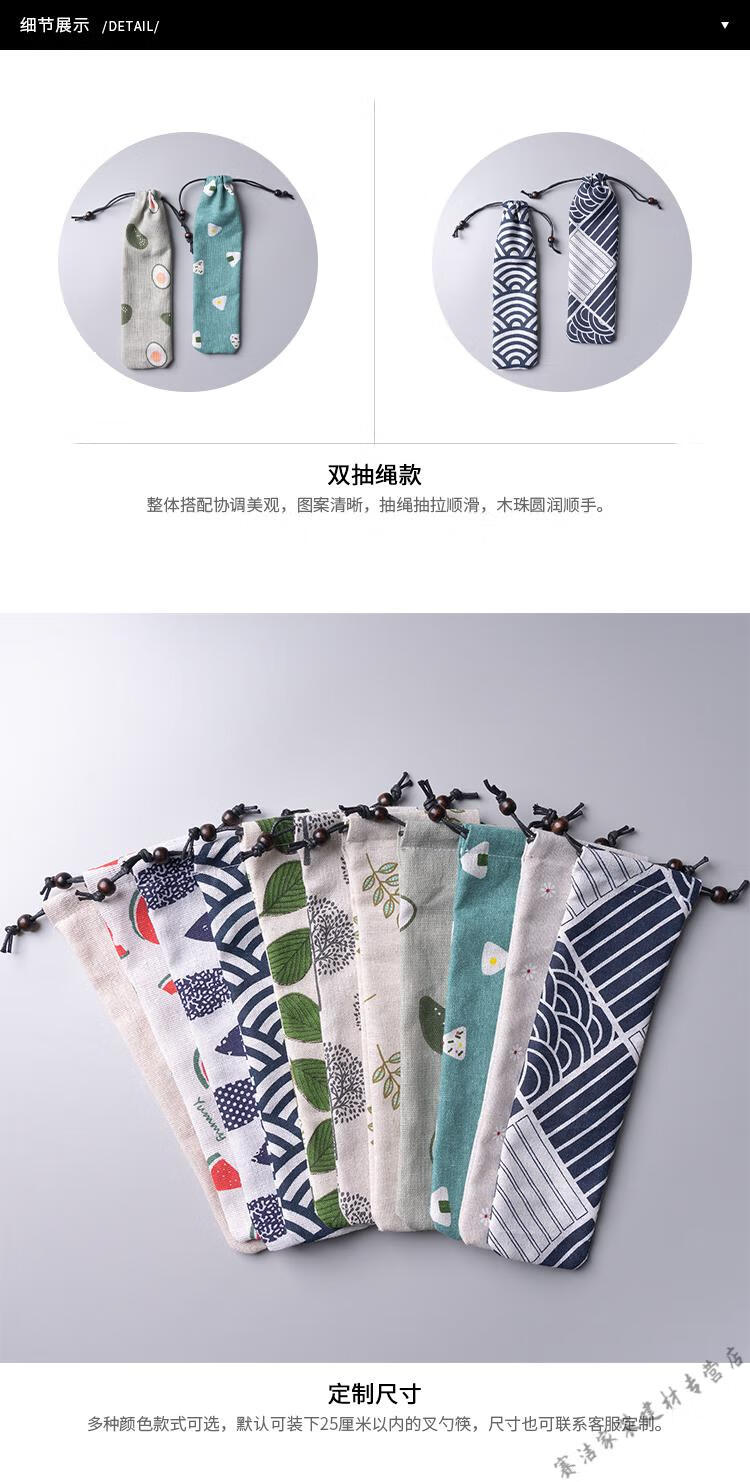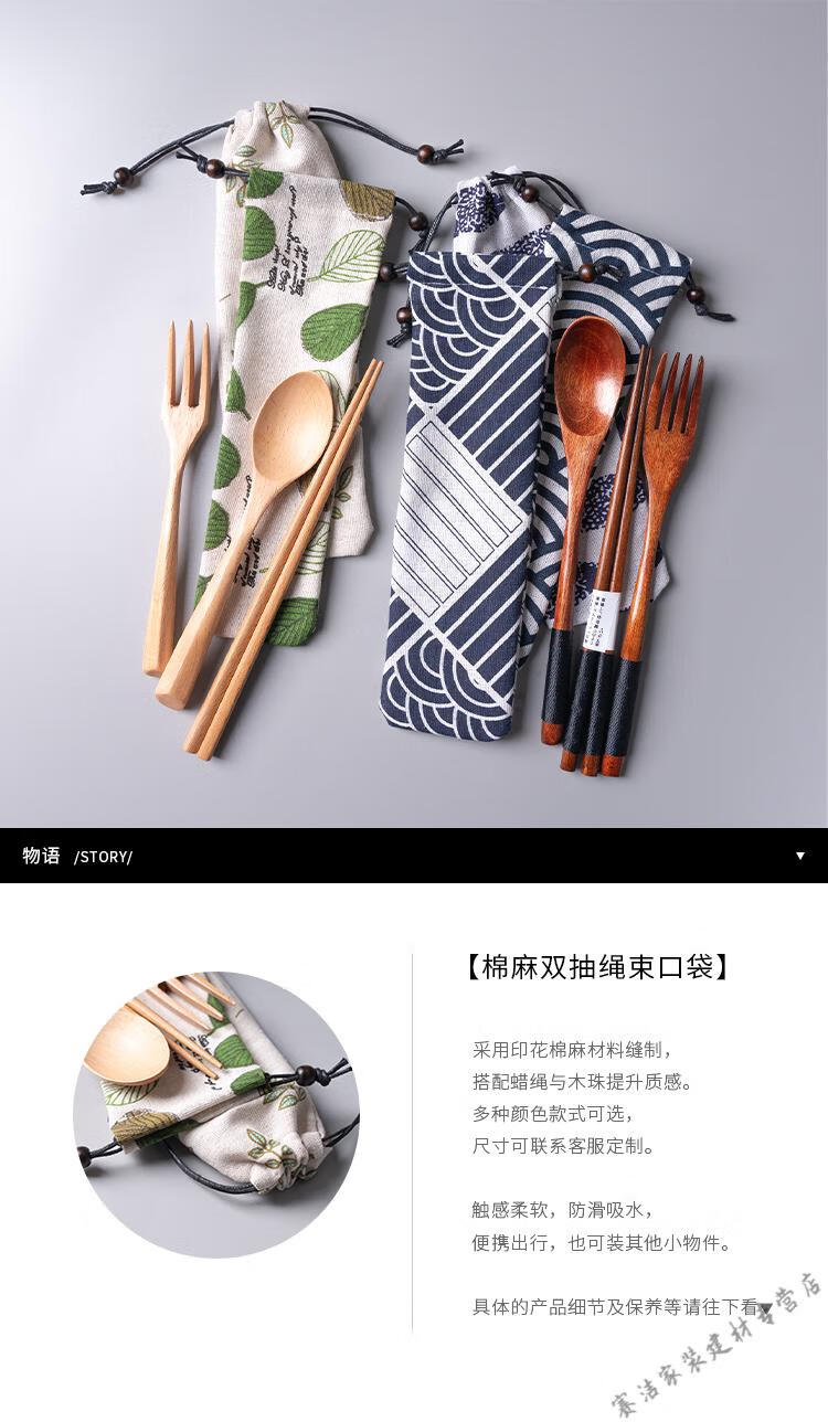 Jieyunmao Japanese simple style cloth bag chopsticks and spoon set portable creative portable tableware bundle pocket storage box lunch box single set Set A
