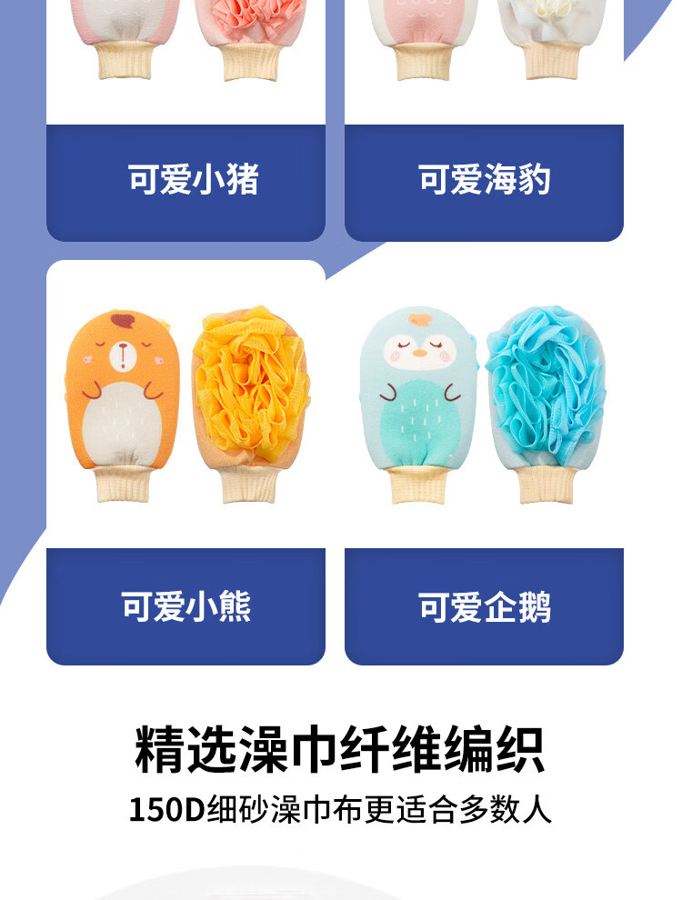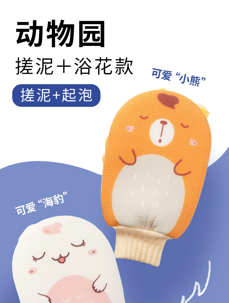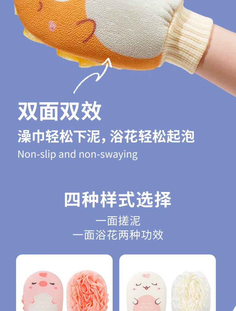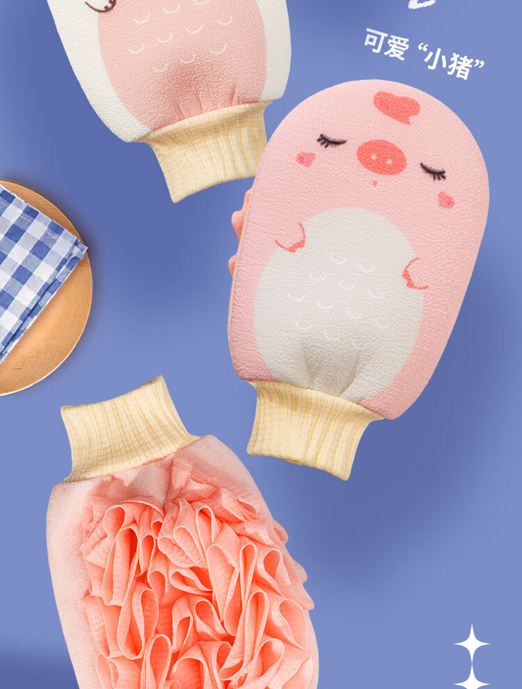 Shantou Lincun rub bath and mud bath for women, special rub bath and bath artifact bath for household thickening bath flowers 2-in-1 2-pack piggy series, random color or note _ rub bath_bath_2-in-1