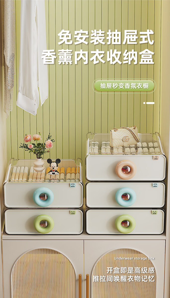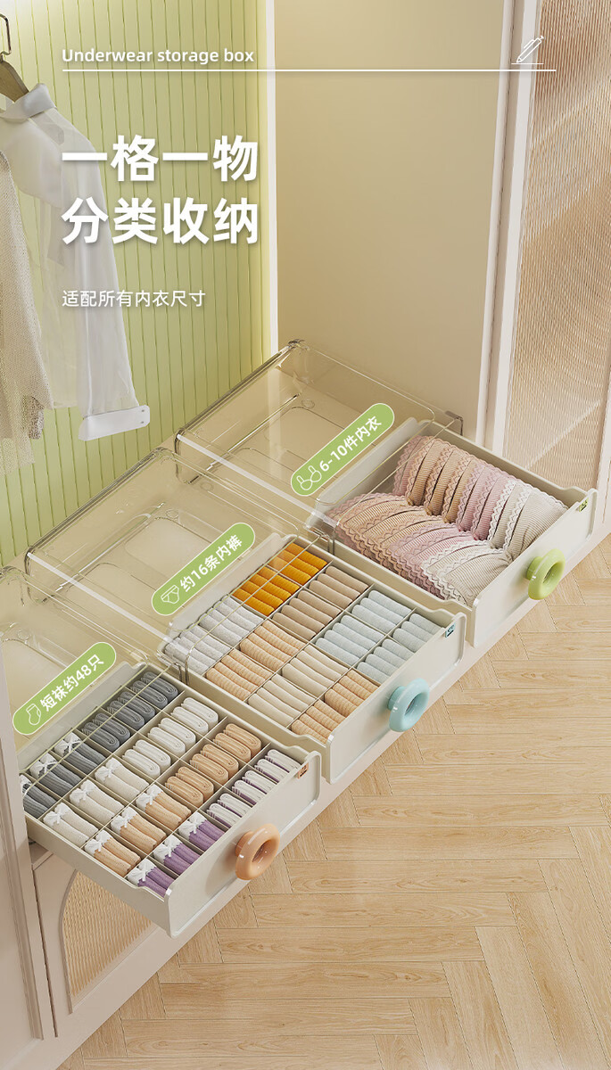 Fantasy Underwear Storage Box Drawer-type Sock Storage Artifact Underwear Storage Box Wardrobe Divider Organizing Box Hermès Orange + Mint Green Underwear + Socks Combination Pack