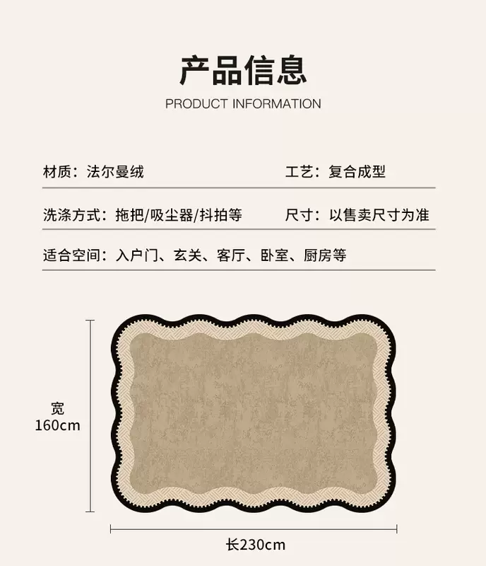 Yusenyi French retro living room carpet sofa bedroom floor mat no-care waterproof no-wash wipeable thickened special-shaped Jianxin wave 240x400CM