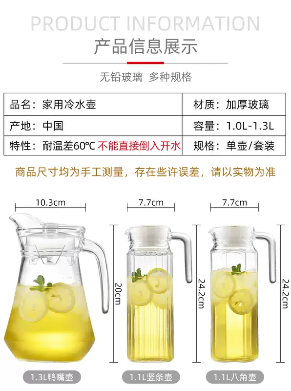 Yusenyi Glass Cold Kettle Large Capacity Cold Kettle Household Juice Bottle Cold Kettle with Lid