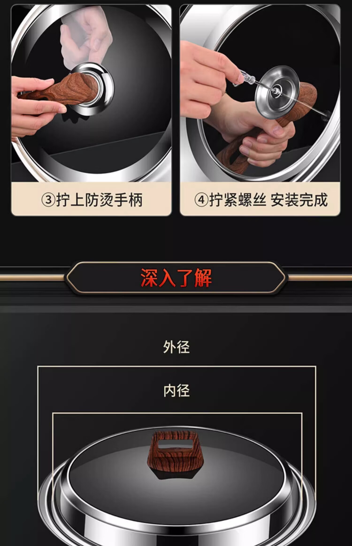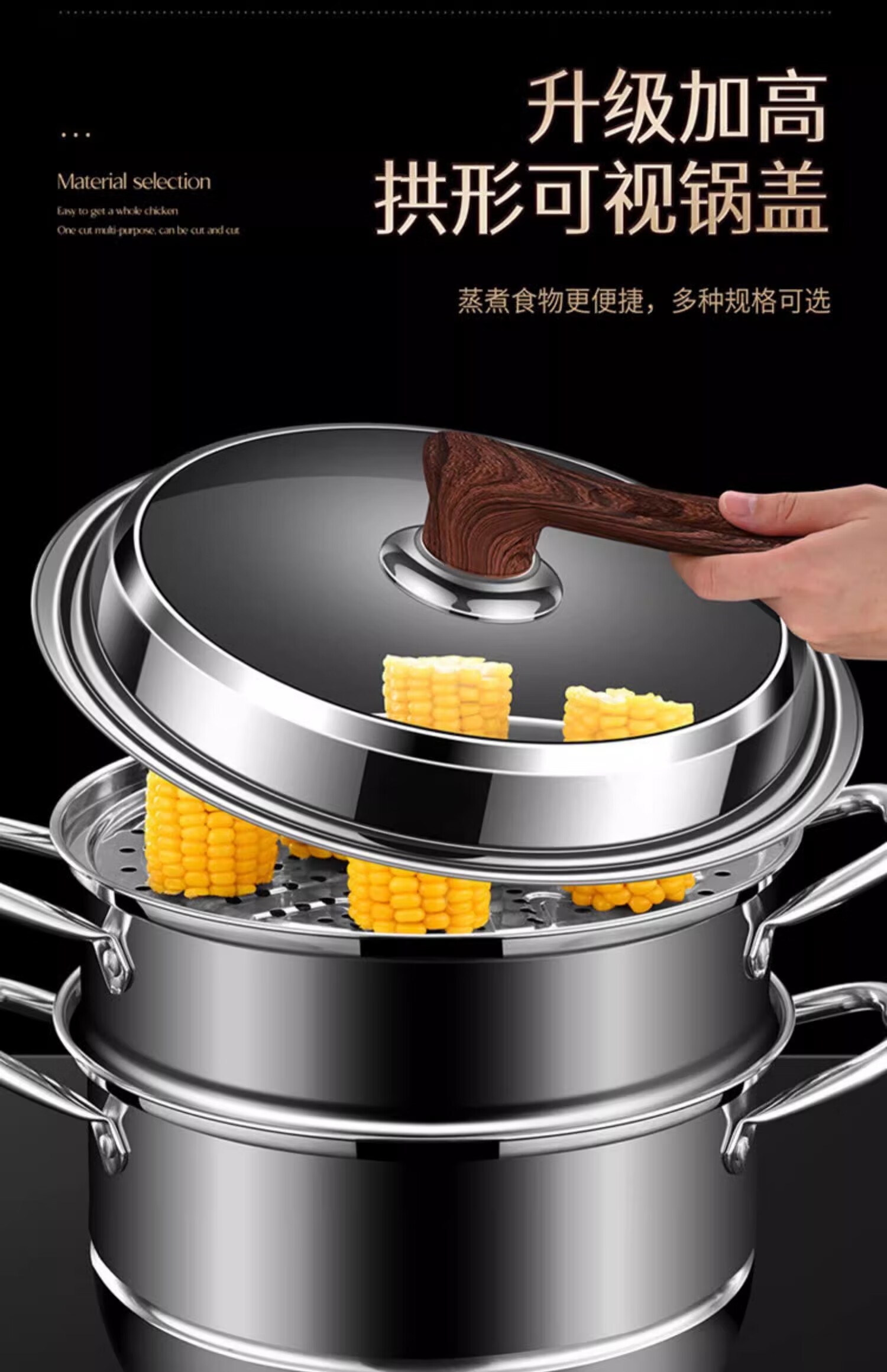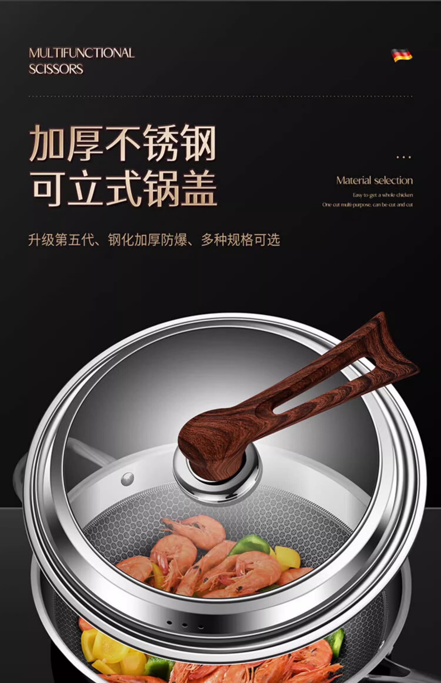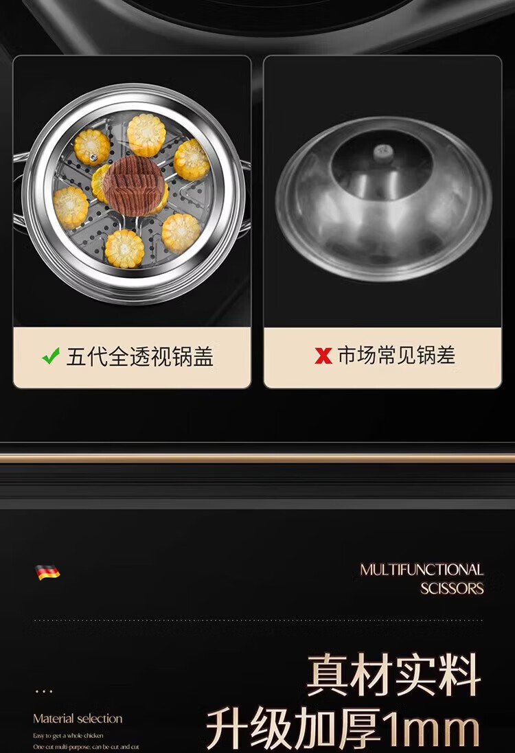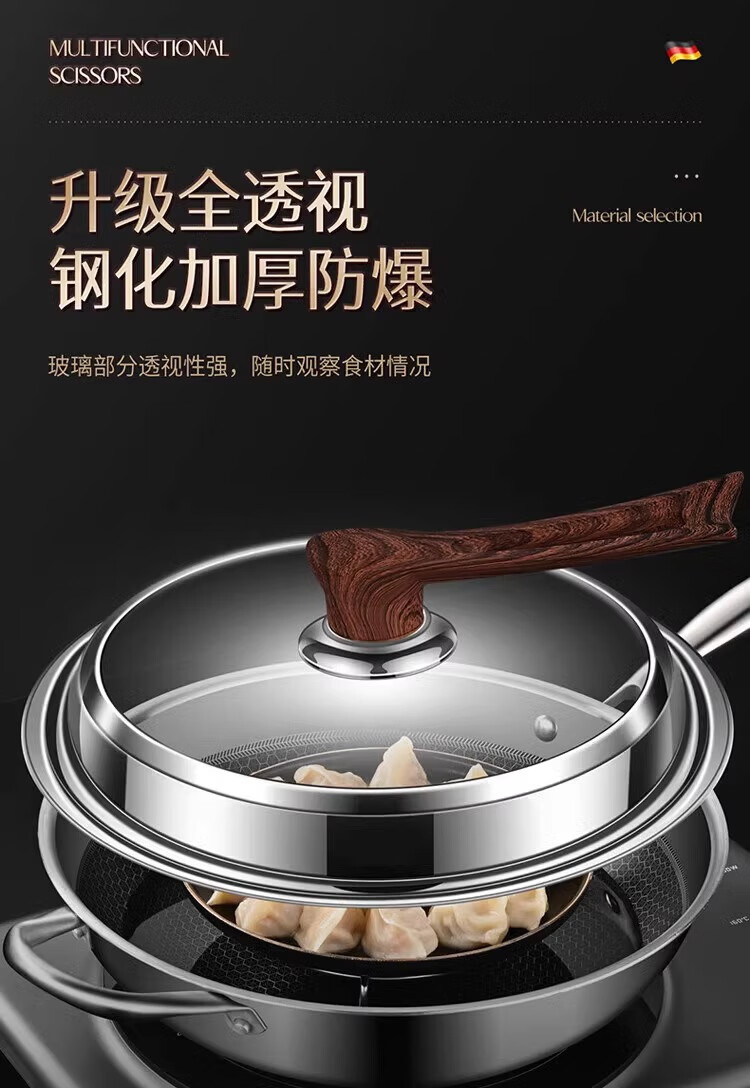 Sungsa Japanese high-arch pot lid 32 large 34-inch visible tempered glass household stand-up stainless steel cooking with high temperature resistance pure steel handle 30cm