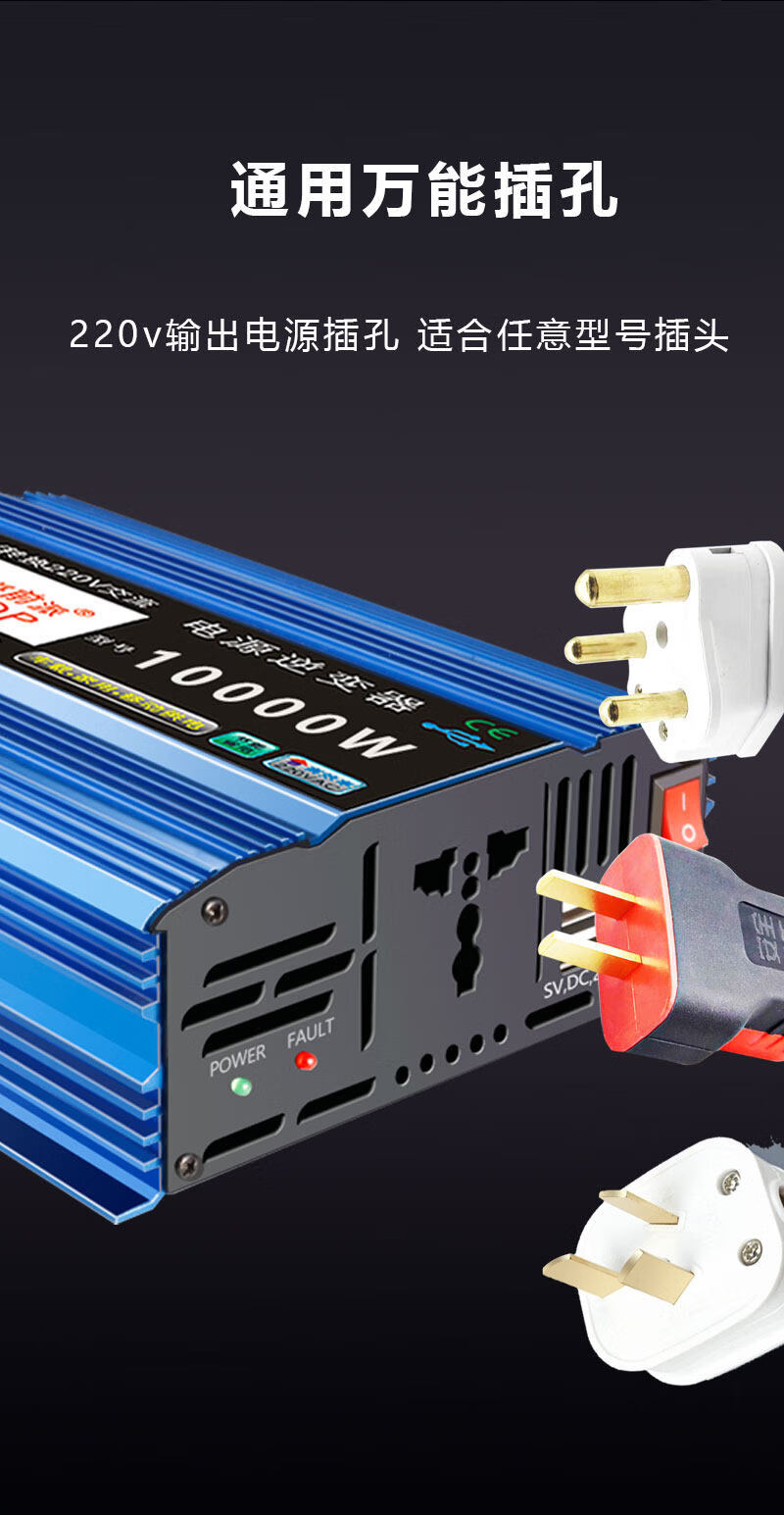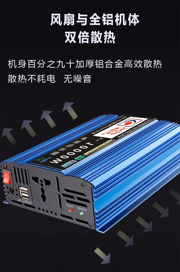 KOWSI high-power inverter pure sine wave truck-mounted three-wheel battery universal 12v60 conversion 220 volt charging source 24 upgraded models upgraded models 12 volts to 220 volts 3000 + intelligent protection + pure inverter