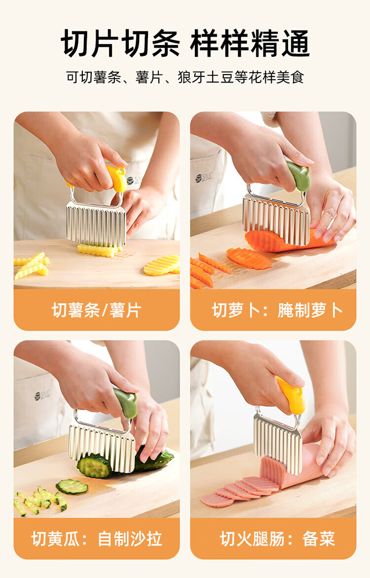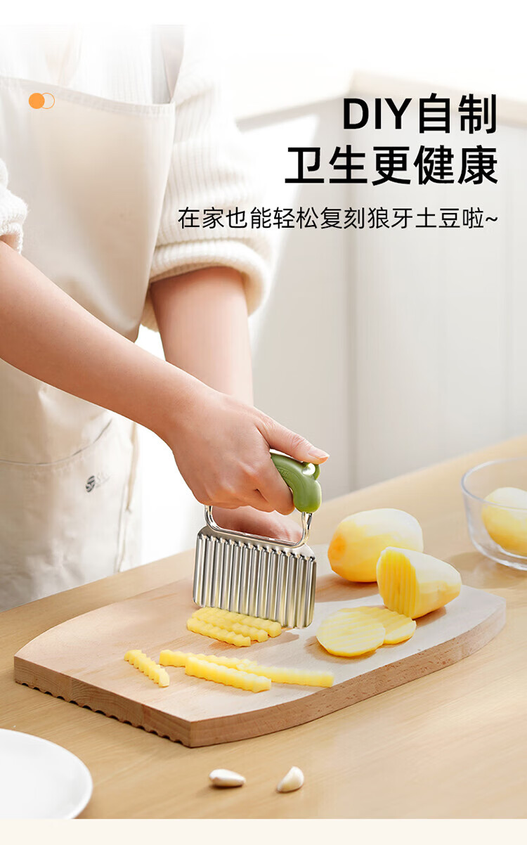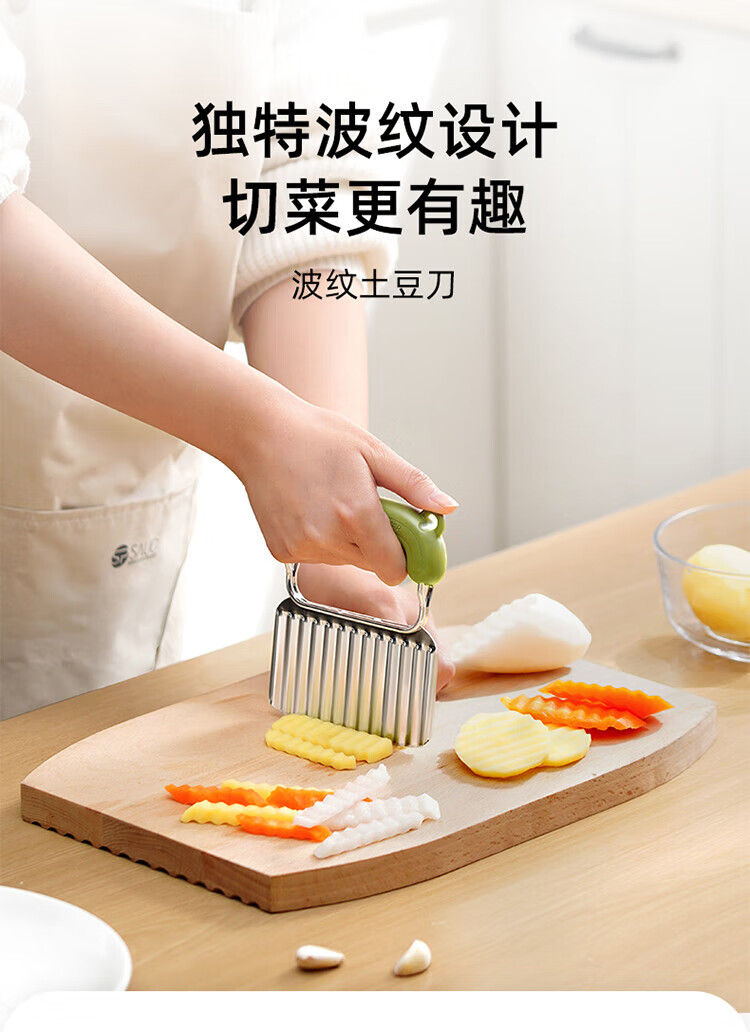 Sungsa Wolf Tooth Potato Knife Corrugated Knife Stainless Steel Cutting Potato Slices Wave Knife Cutting Vegetables Potato Fries Knife Corrugated Potato Knife (without silicone cover) Green