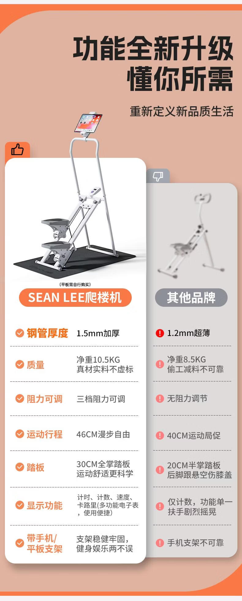 SEANLEE multifunctional stair climbing machine home indoor aerobic exercise fitness equipment climbing mountaineering step machine white basic model