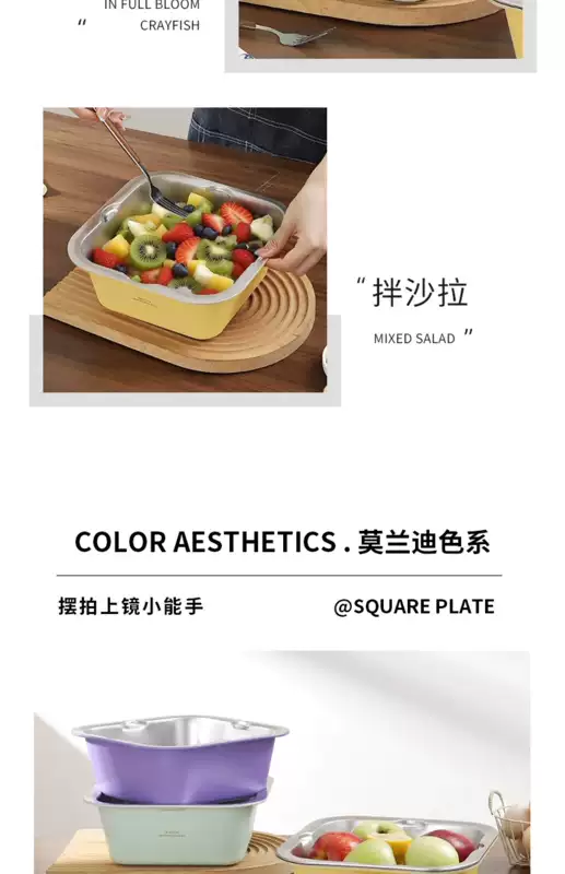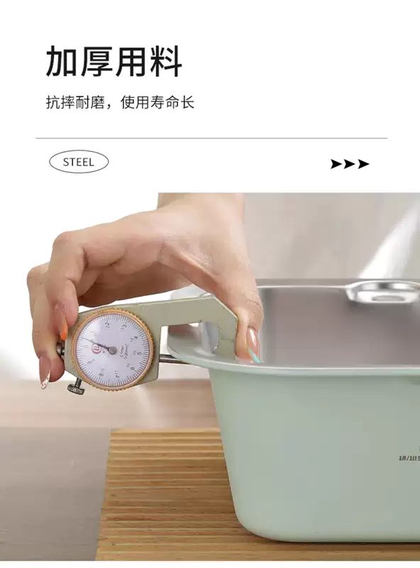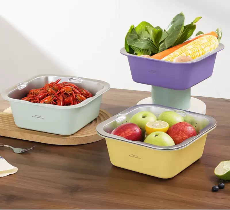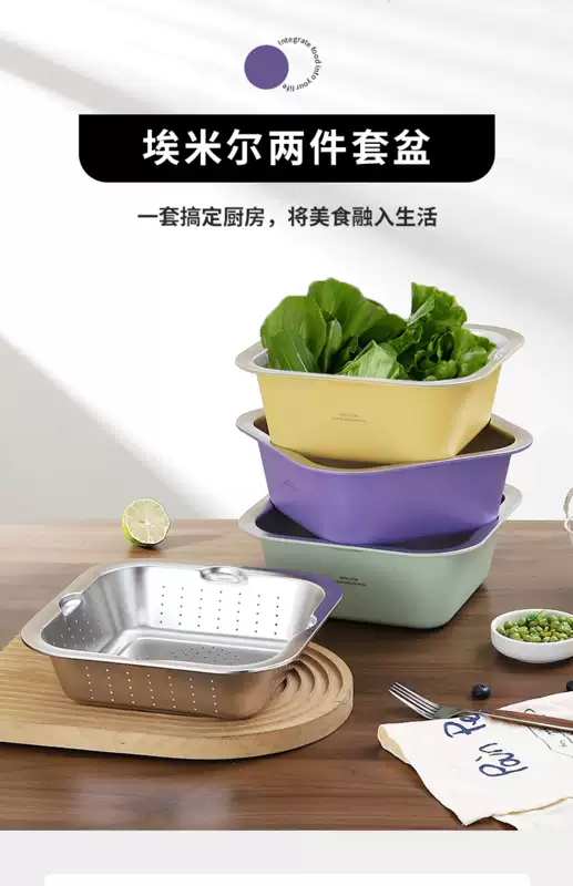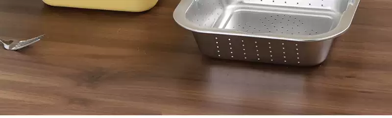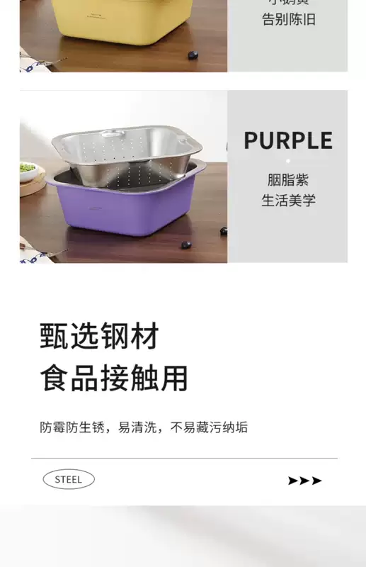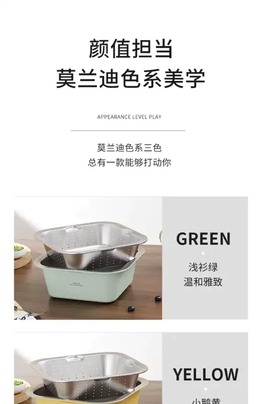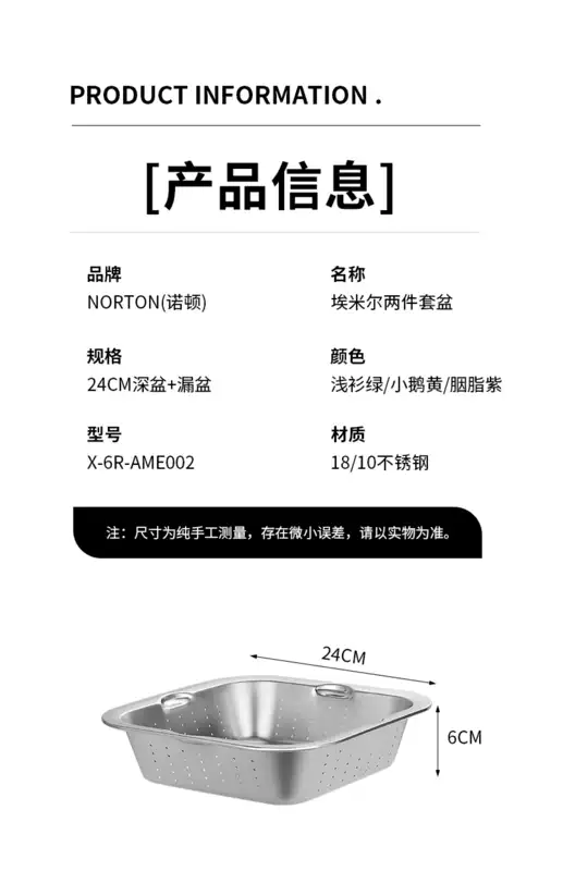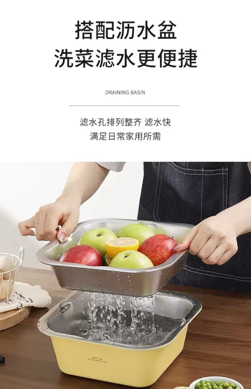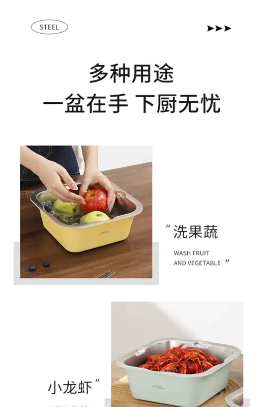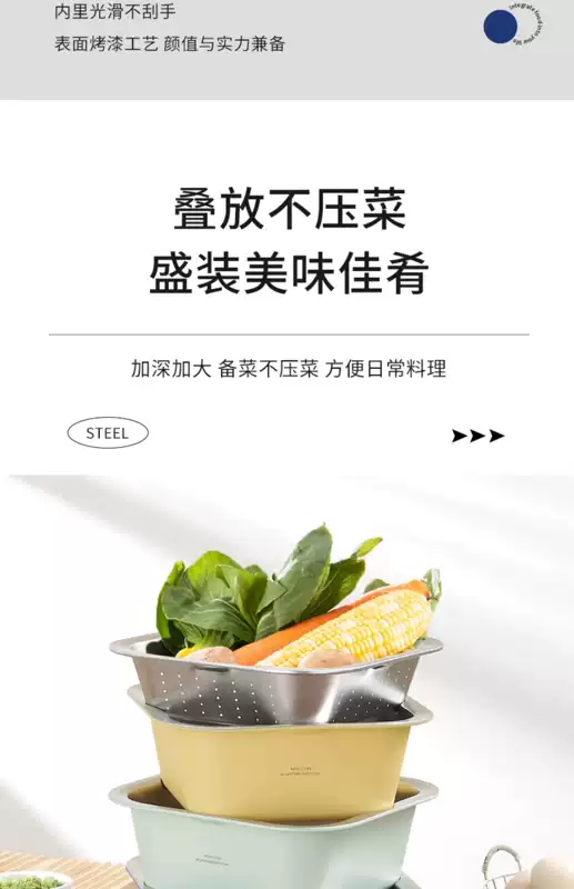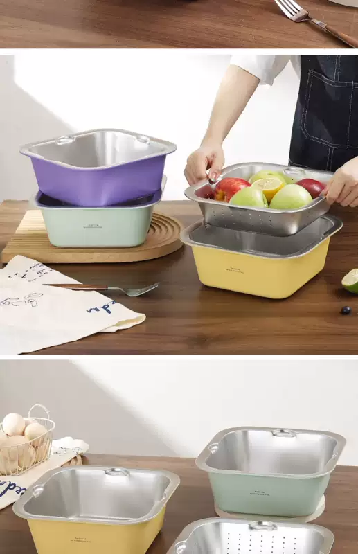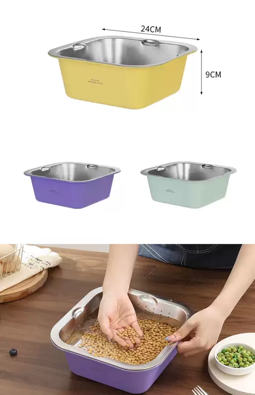 Yusenyi norton vegetable washing drain basin basket leaky sieve kitchen basin filter basin household basin rice washing stainless steel square 316 goose yellow two-piece set 24CM