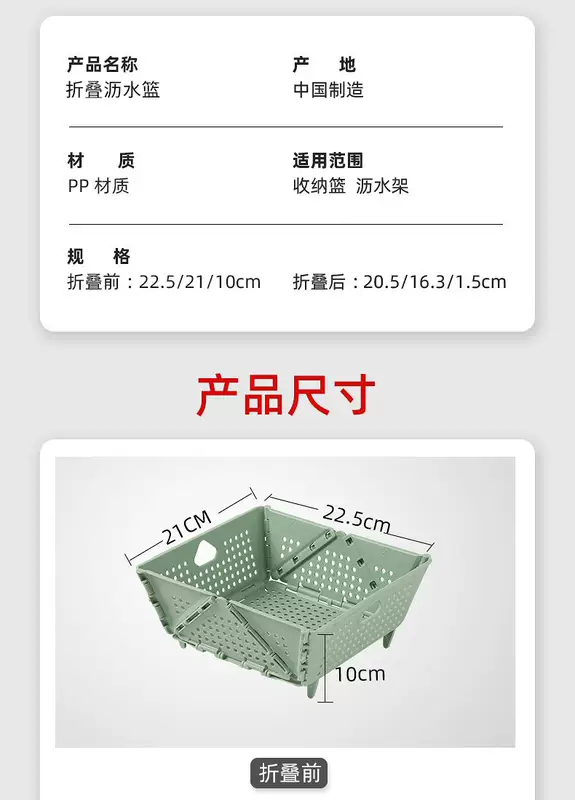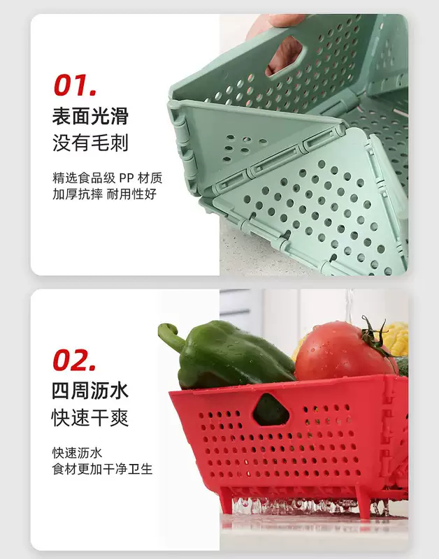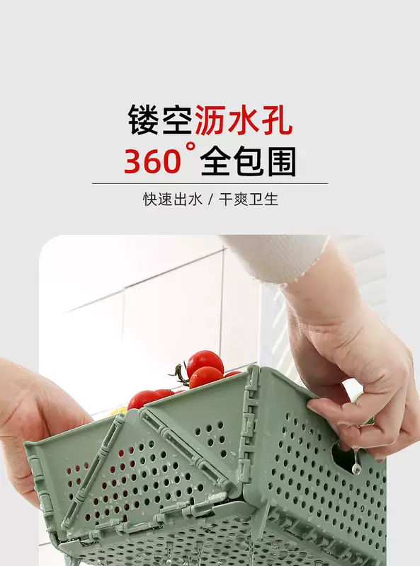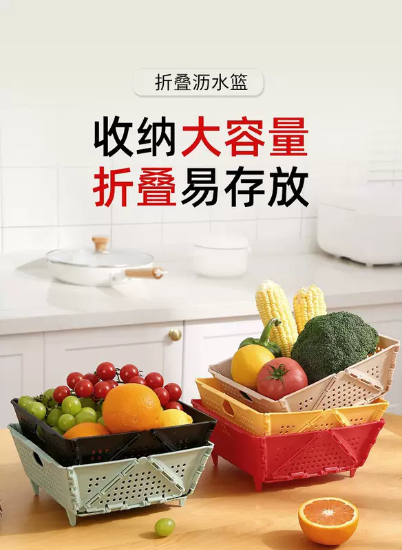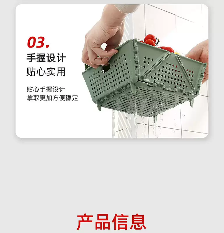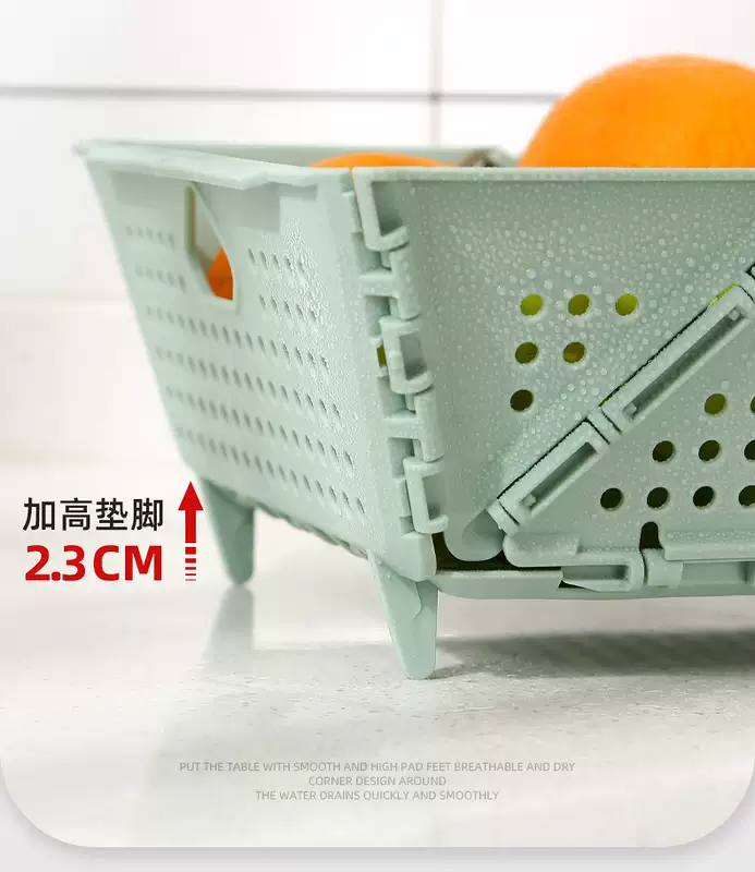 Yusenyi Home Folding Wash Basin Drainage Basket New Living Room Kitchen Storage Hollow Filter Water Washing Fruit Washing Vegetable Basket 1 Pack Green Foldable