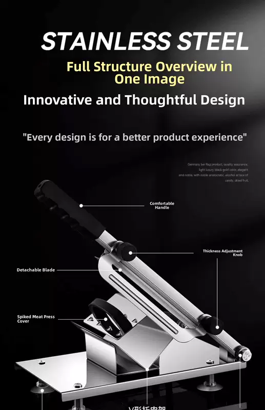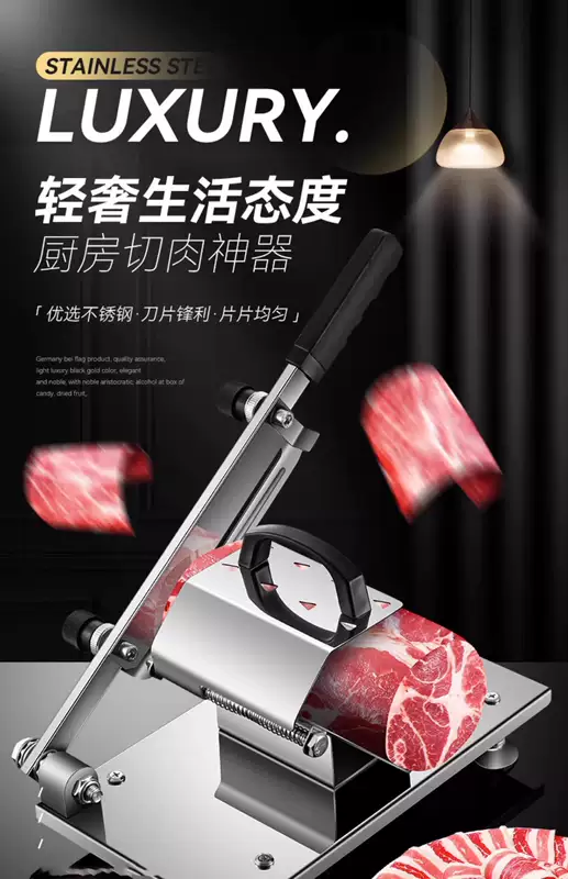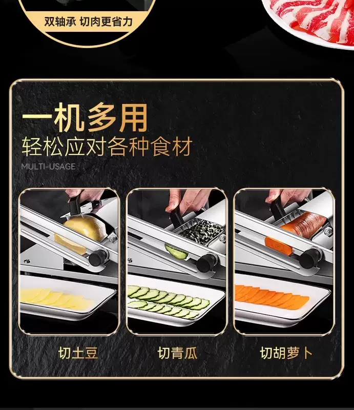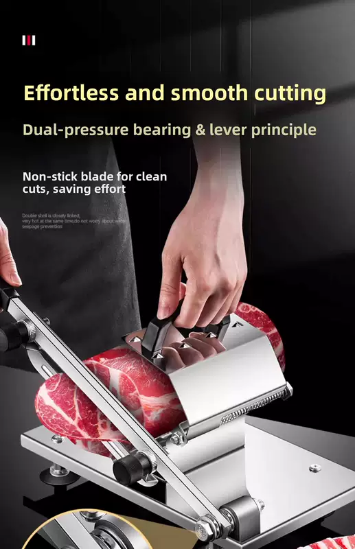 Yusenyi Dual Manual Meat Slicing Machine Home Frozen Beef and Mutton Roll Slicing Machine Multifunctional Universal Ham Slicing (Large Size) Free Spare Blade - Frozen Meat Bag Stainless Steel Upgrade