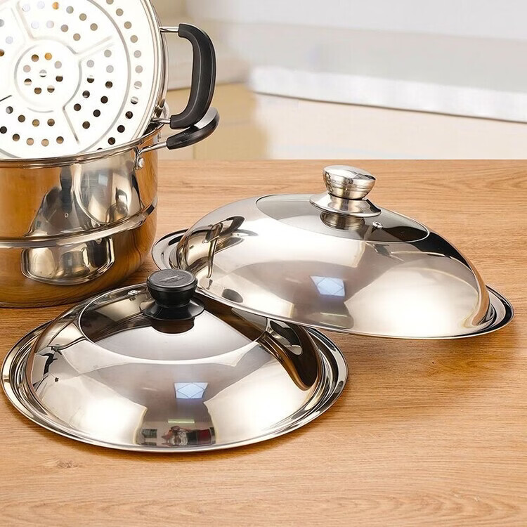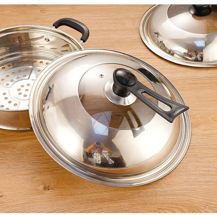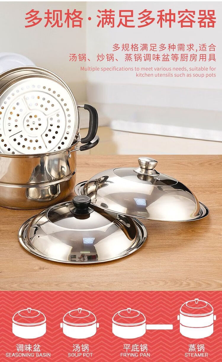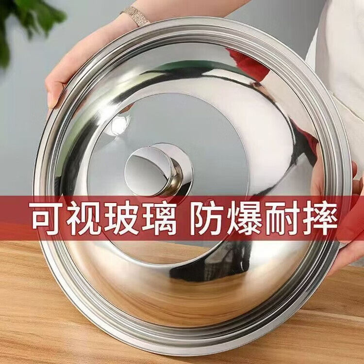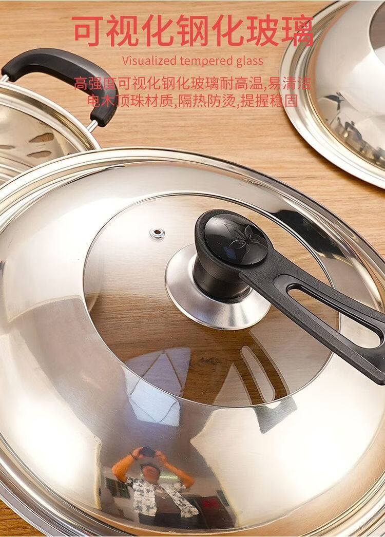 Yong Huan imported quality 304 pot lid from Germany, thickened stainless steel household high temperature resistant and explosion-proof visual glass combination lid for frying, tempered glass combination lid, free steel ball handle, specifications suitable for 40-41.5 cm pot #42