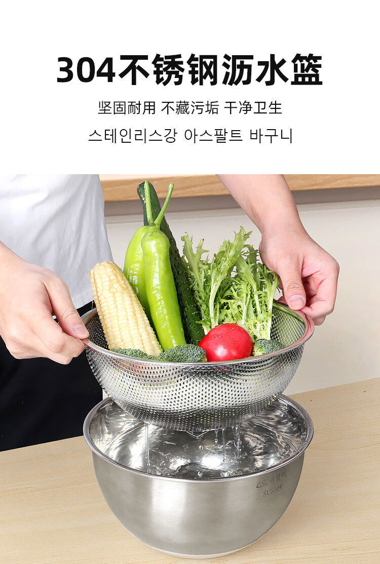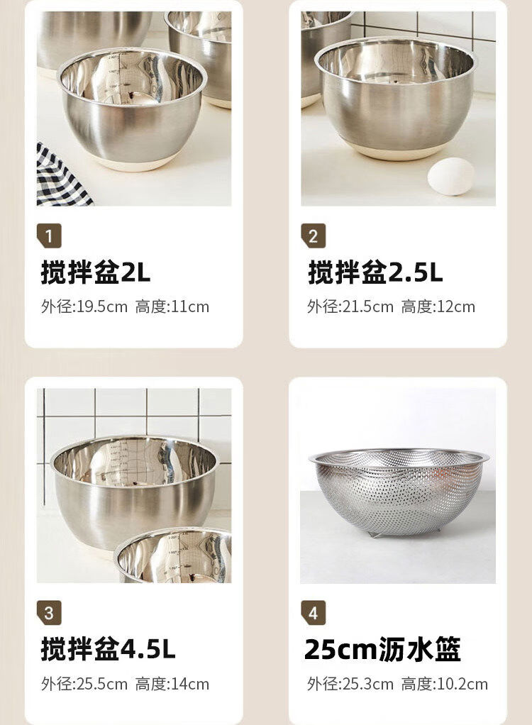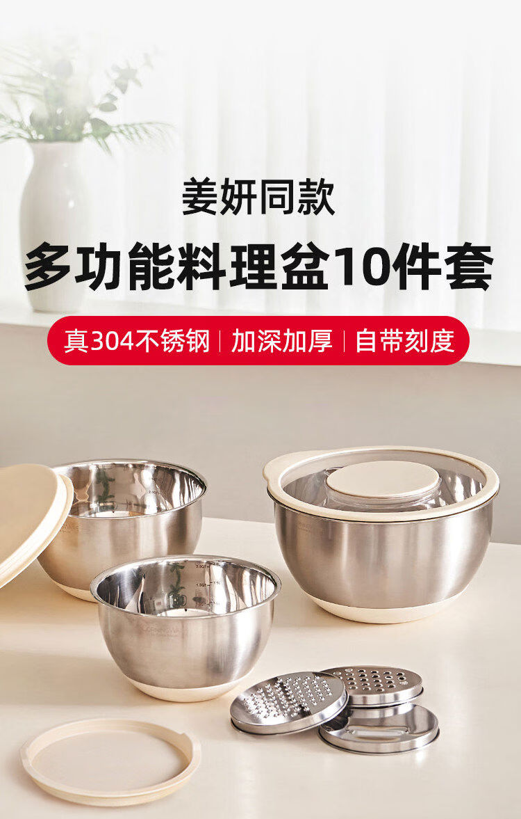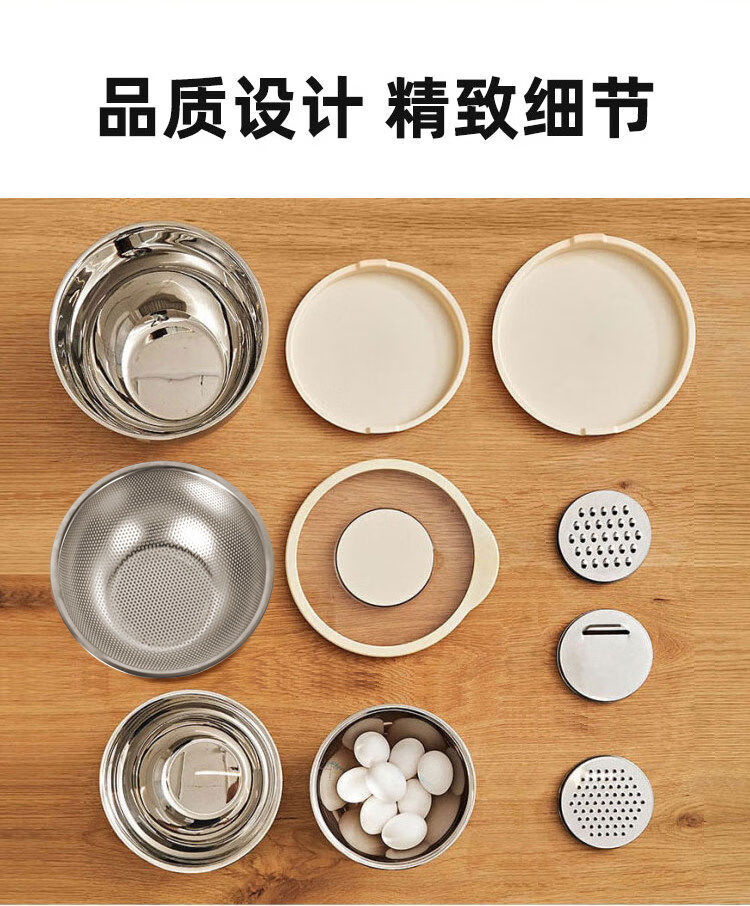 Jianyimao Jiangyan 304 stainless steel dish basin household multi-functional baking egg and noodle basin drain basket grater 304 stainless steel basin 9-piece set