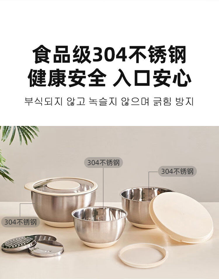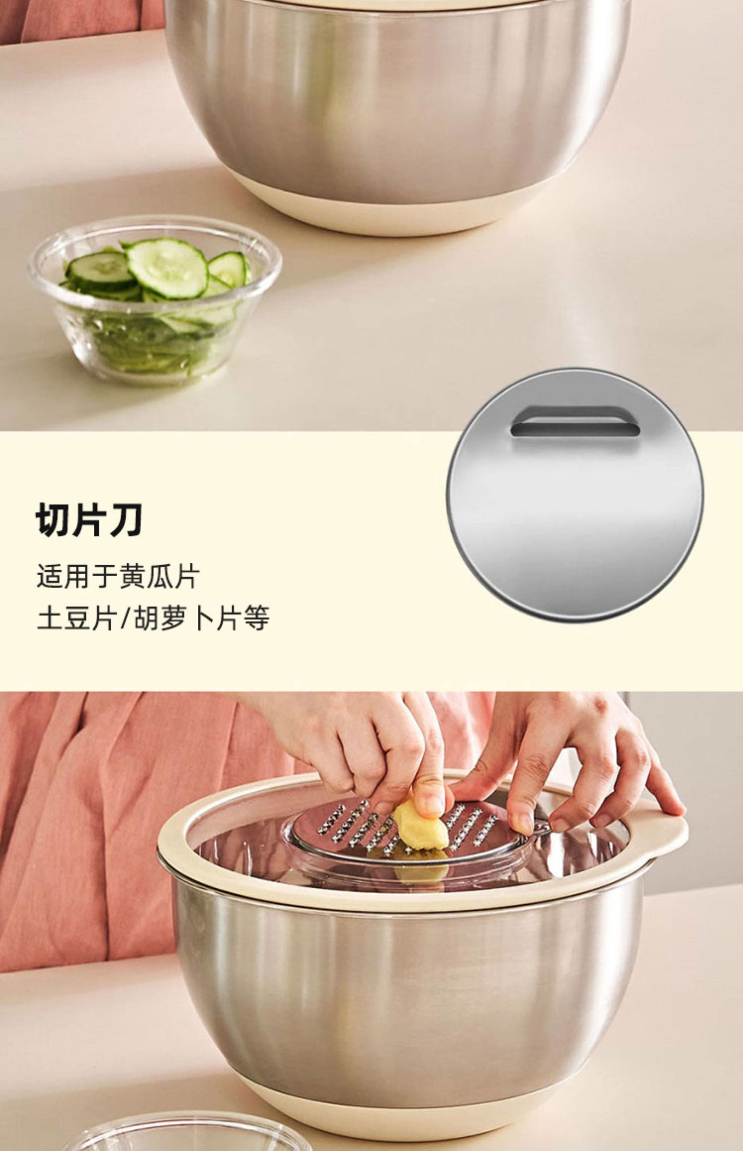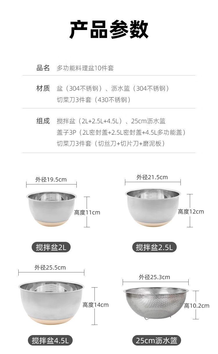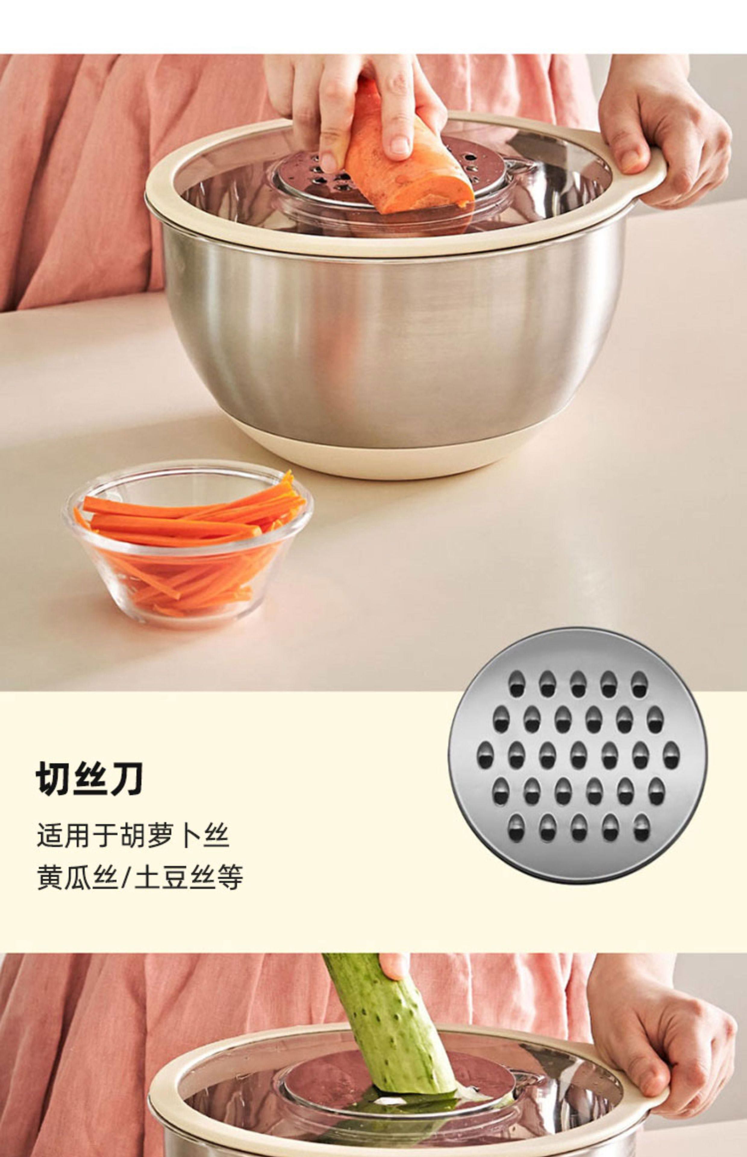 Jianyimao Jiangyan 304 stainless steel dish basin household multi-functional baking egg and noodle basin drain basket grater 304 stainless steel basin 9-piece set