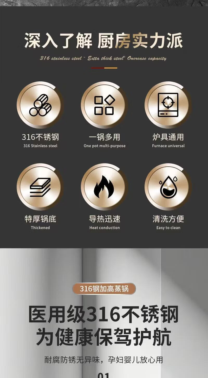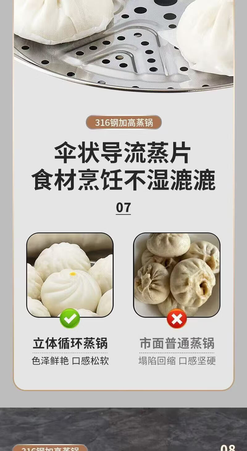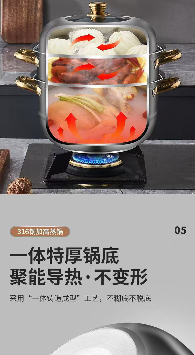 SUPOR's same style steamer 316 extra thick food grade stainless steel household double layer three layer steamed buns extra thick 316 food steel three layers 36cm