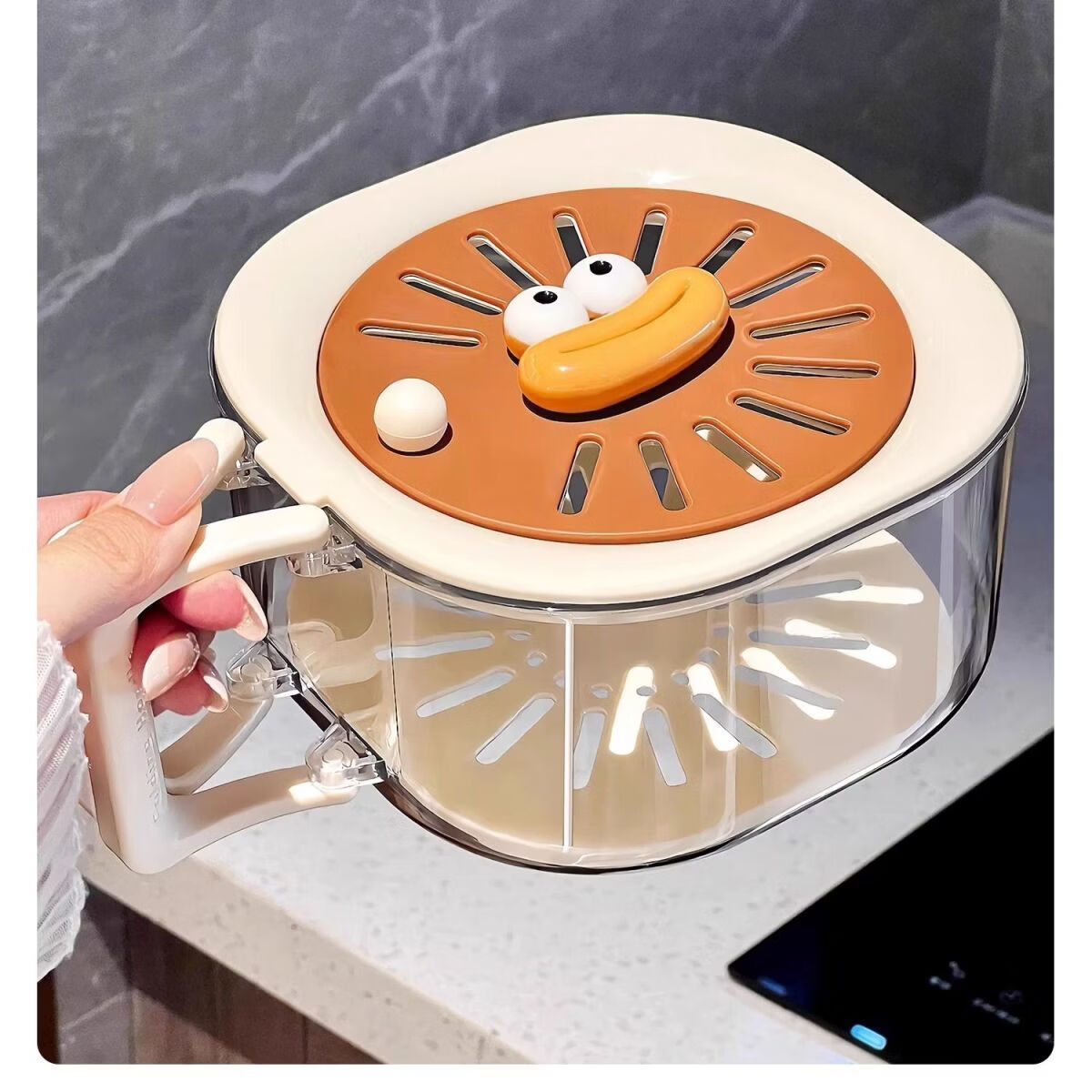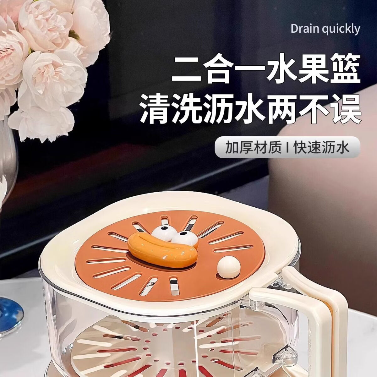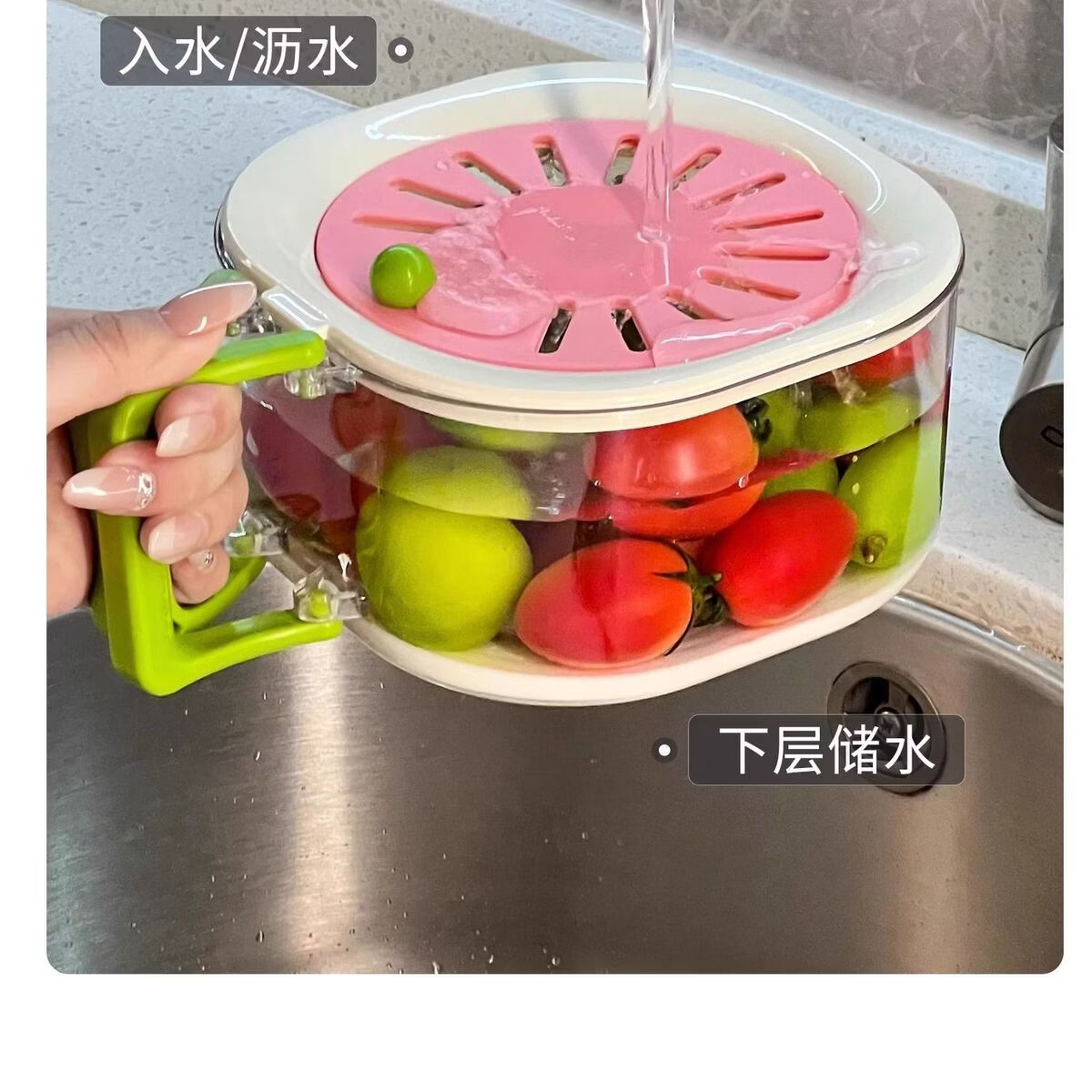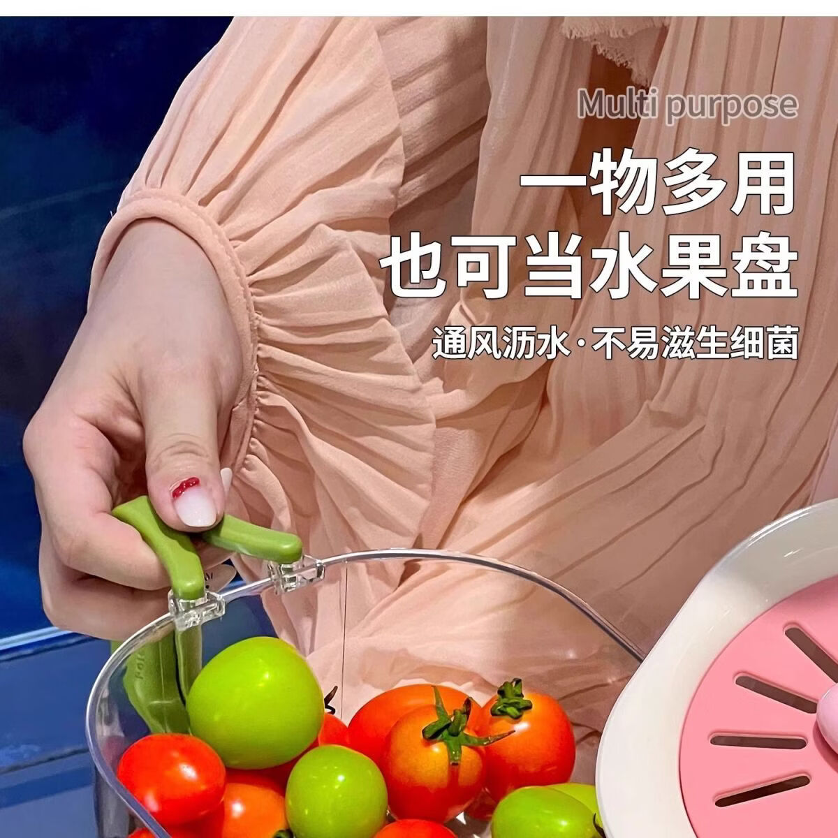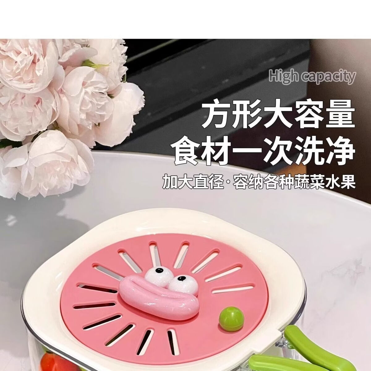 Yusenyi vegetable basket multifunctional drain basket kitchen vegetable basket with lid handle cute fruit washing tool portable crisper strawberry powder 1 pack 2-in-1 fruit drainer no specifications