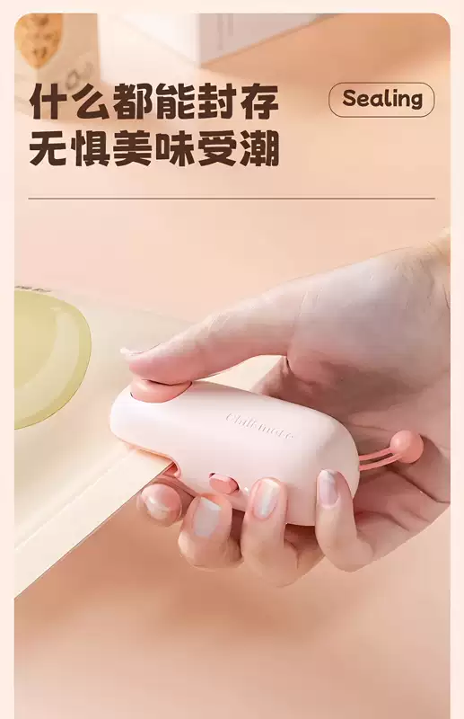 Yusenyi sealing machine household small mini sealing machine plastic sealing machine sealing clip sealing clip sealing artifact snack sealer Q cute pet pink pig (one-painted sealing long battery life free TypeC charging cable)