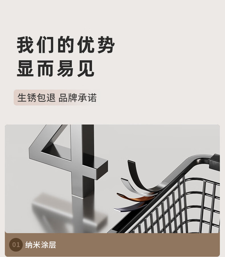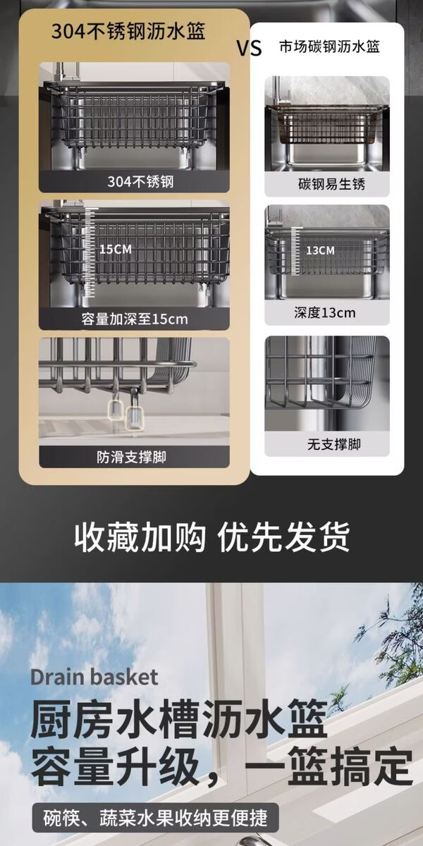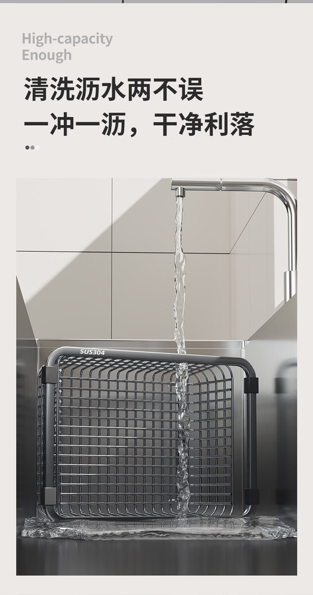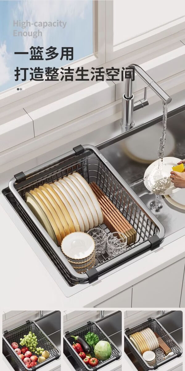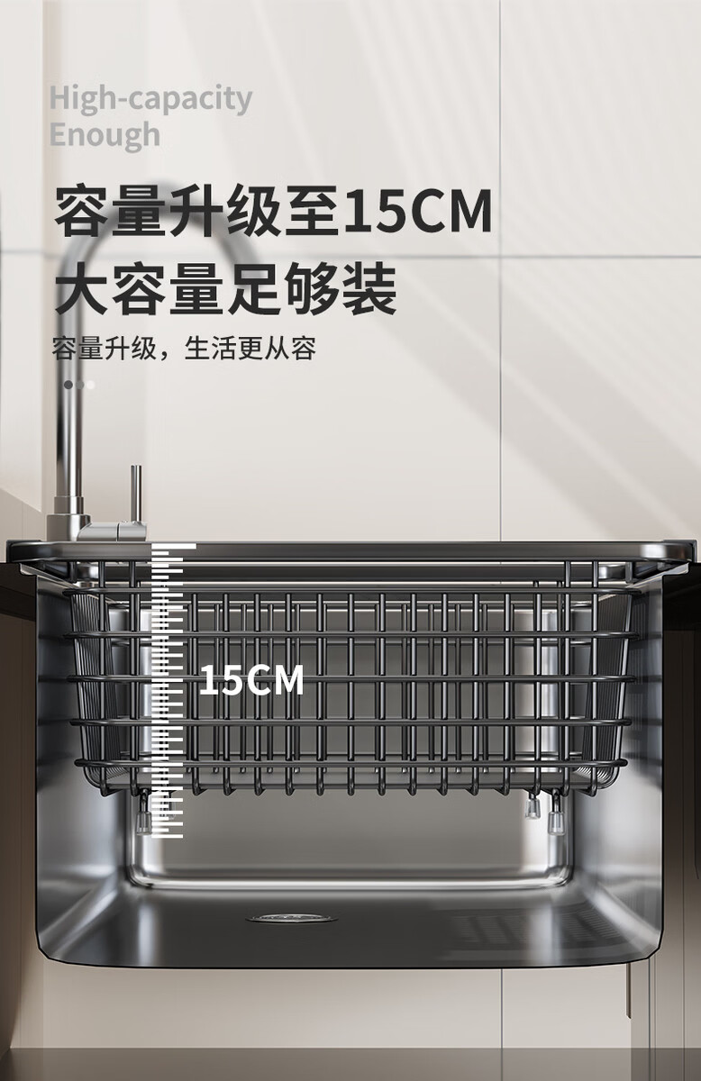 Yusenyi 304 stainless steel drain basket kitchen sink drain rack wash basin dish rack wash basin large single-slot storage rack 34 gray 304 stainless steel nano-encrypted version (applicable to the sink inner length 2