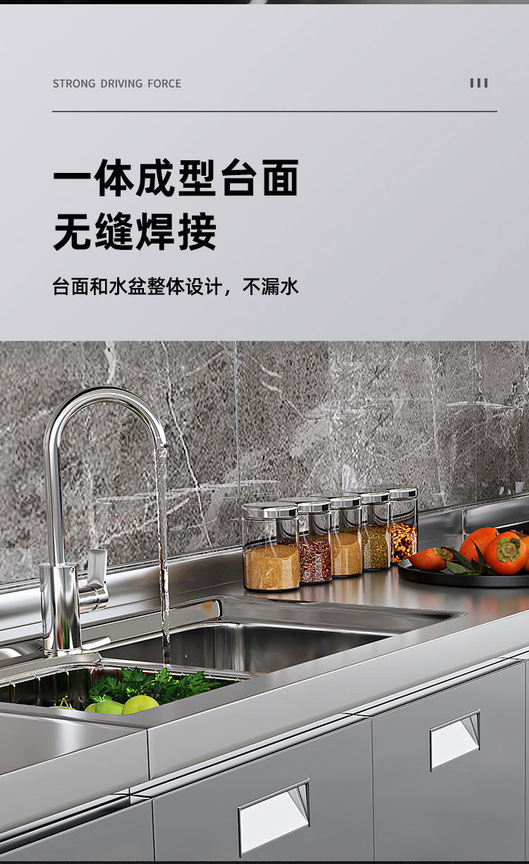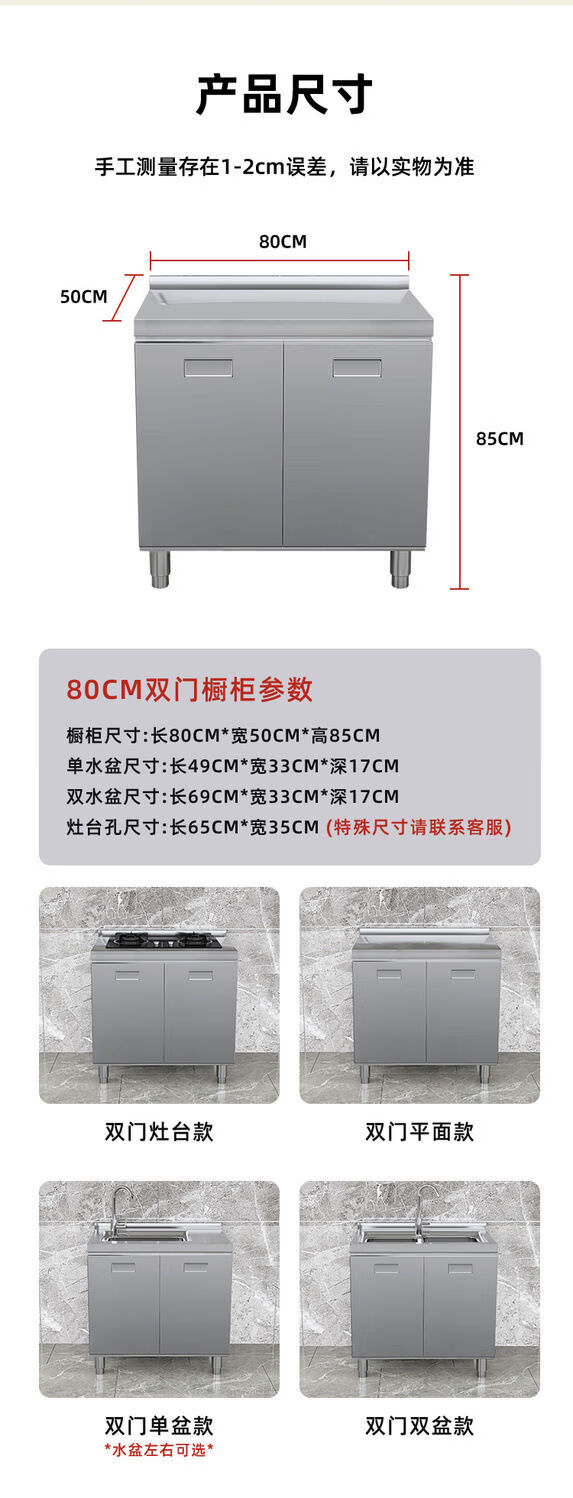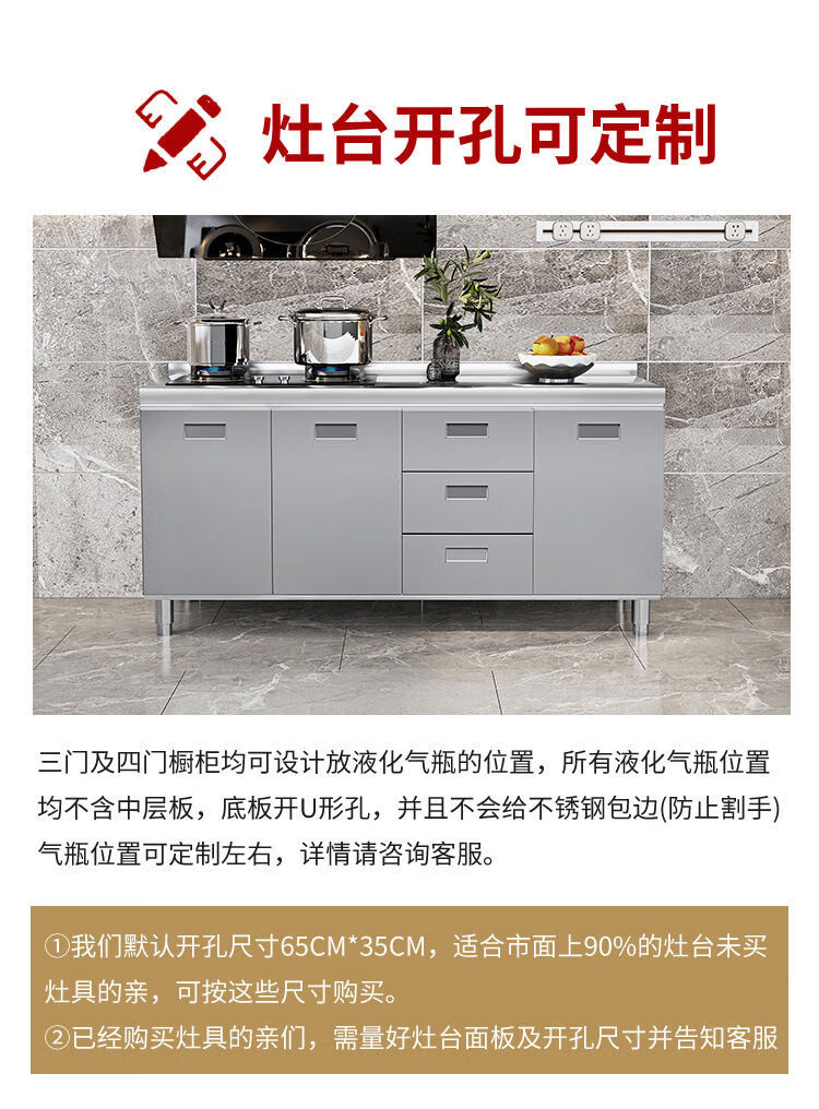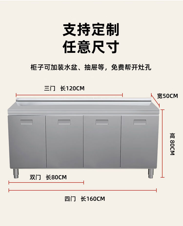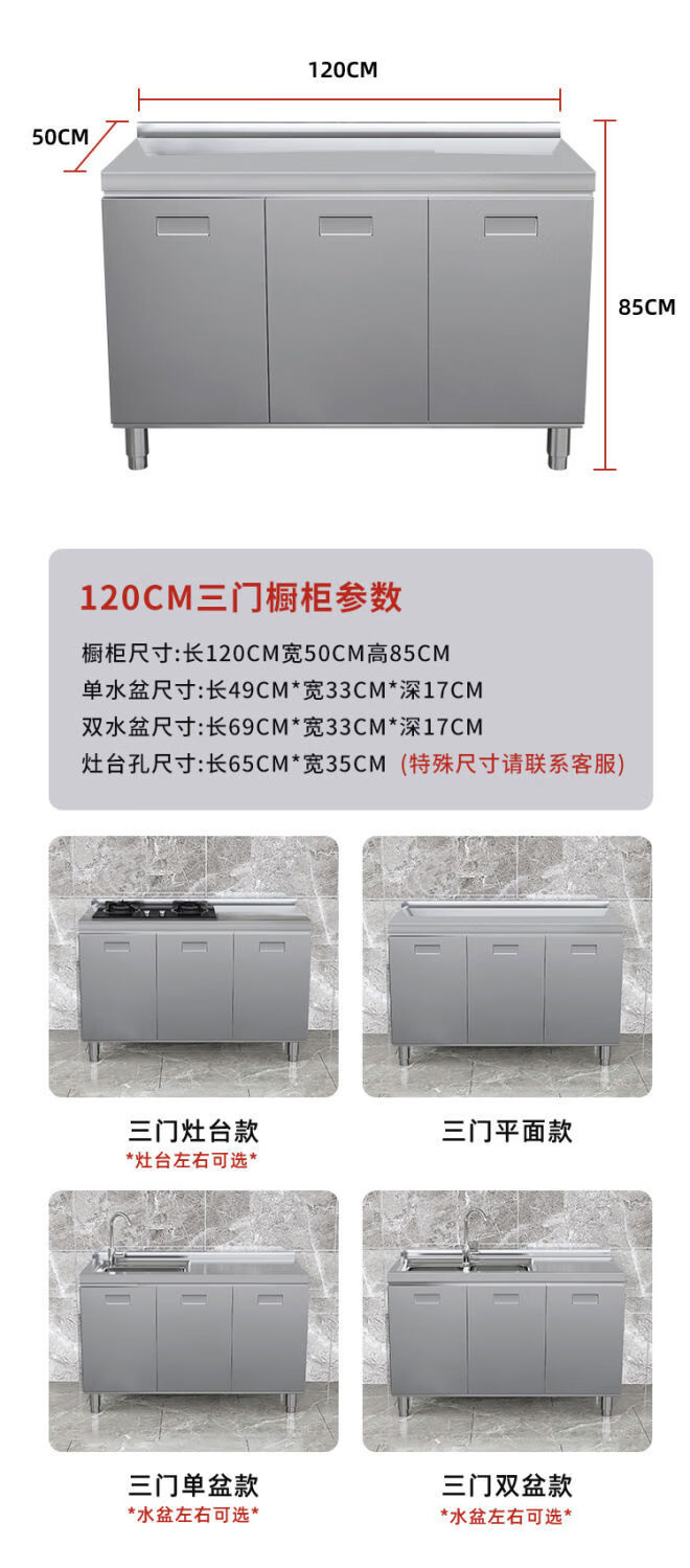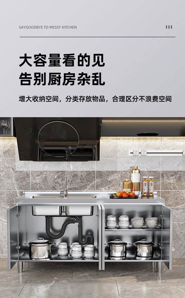 OTHER304 overall stainless steel cabinet extra thick kitchen cabinet stove cabinet integrated household sink cabinet storage cabinet cupboard flat model 304 thickened stainless steel countertop 160cm three drawers and three door model need to note left and right