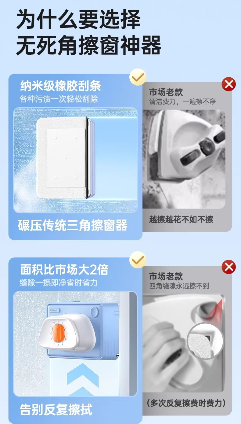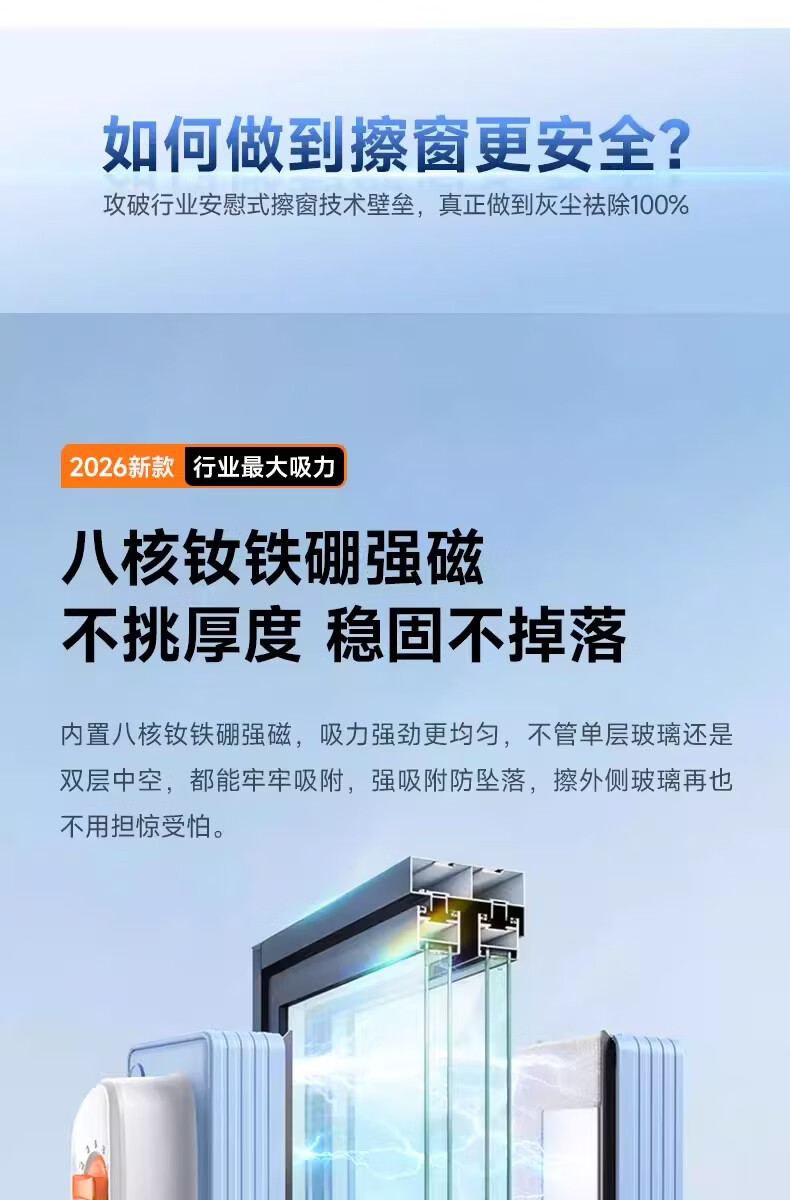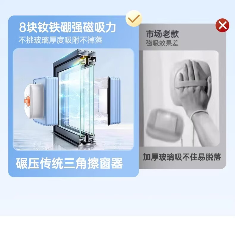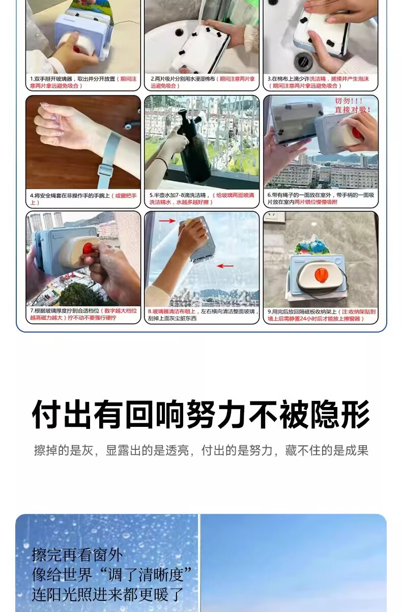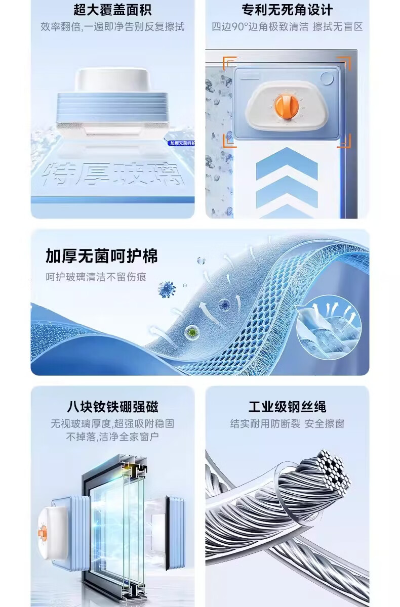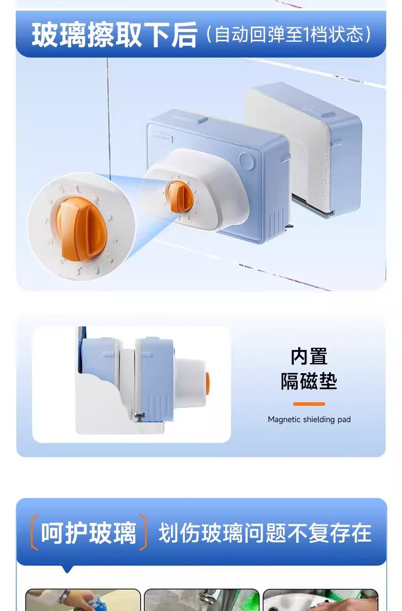 Shipu window cleaning tool, special tool for high-rise exterior windows, housekeeping, special household kitchen and bathroom glass double-sided scrubbing, super strong magnetic force, northern double-layer three-layer, 5-35MM thickness, mirror-level clean