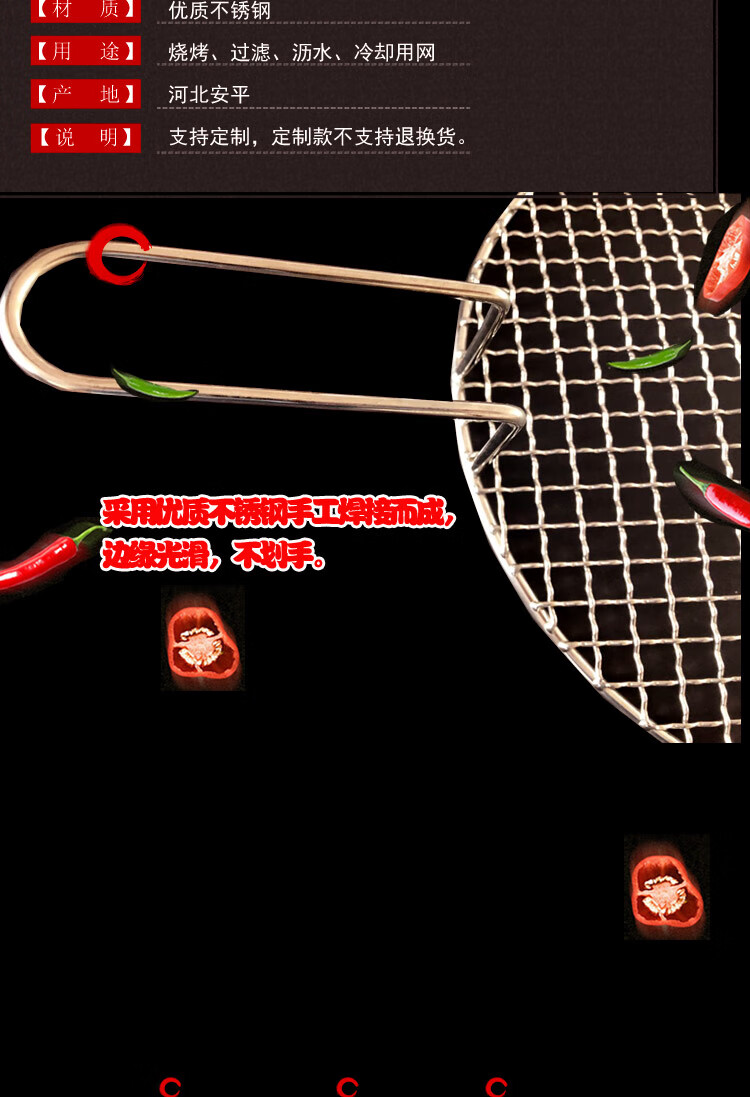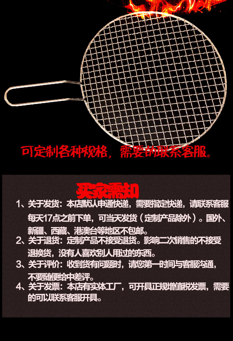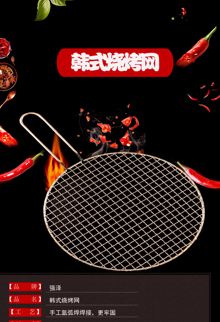 Sailotou Korean stainless steel barbecue mesh round with handle household barbecue fish splint piece camel 65cm silk 2 points 5 pairs of handles