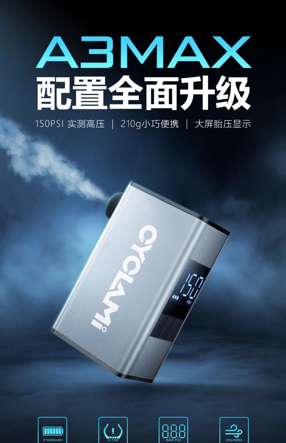 Youqi Cycling Electric Pump Mini High-Pressure Pump Portable Road Mountain Bike Intelligent Air Pump A3MAX_LED Digital Display_Air Pressure Preset_150PSI