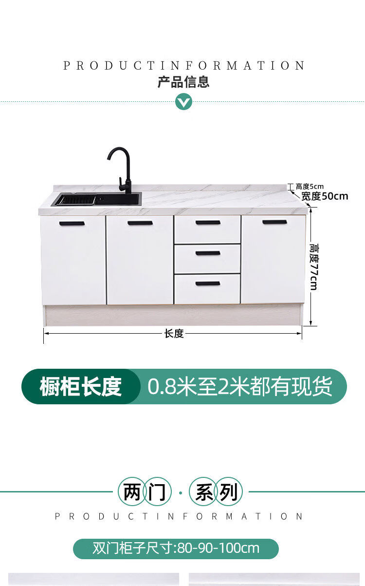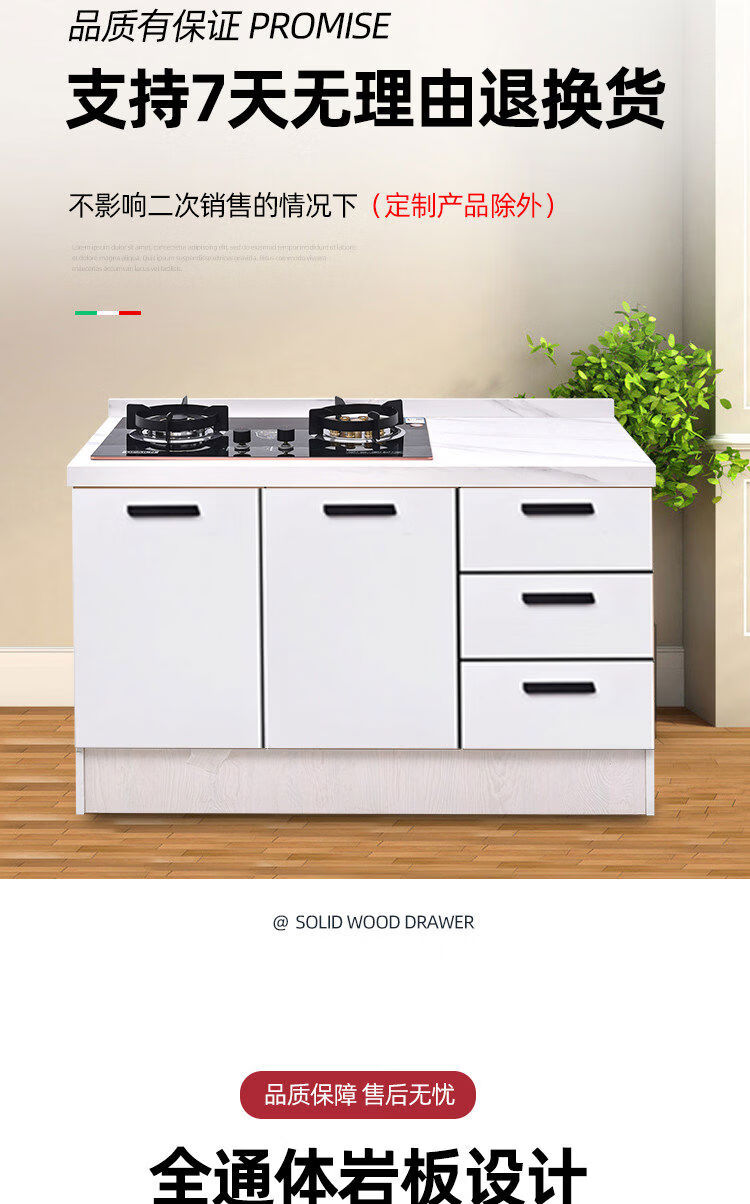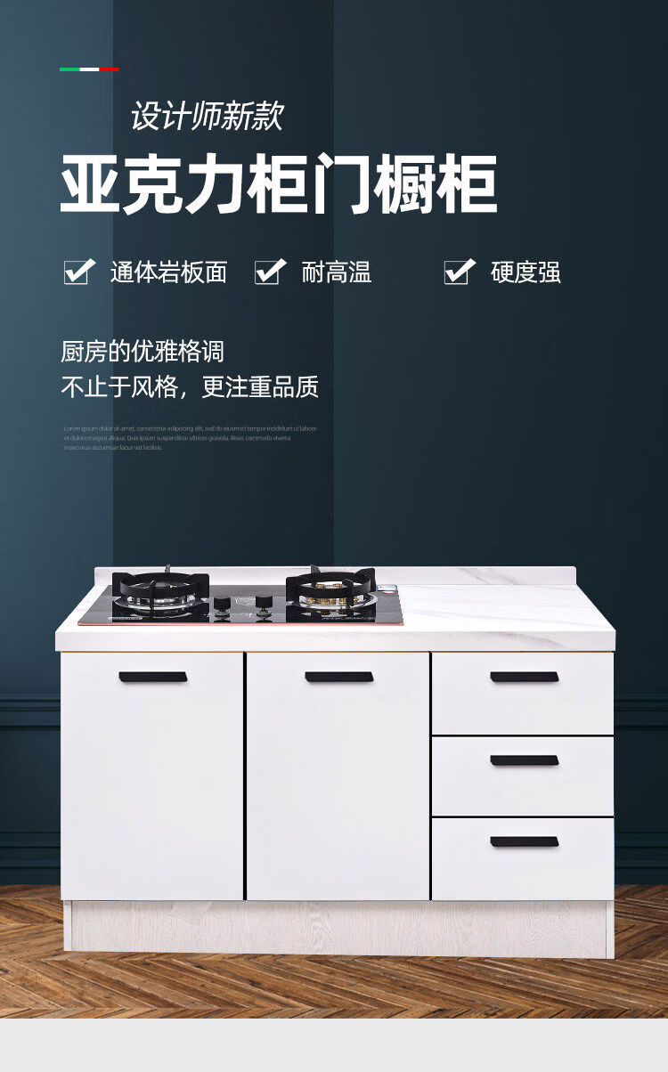 Kitchen integral cabinet stove cabinet rock plate integrated sink cabinet marble countertop simple assembly cabinet dining cabinet custom khaki 100 three-drawer flat multi-door