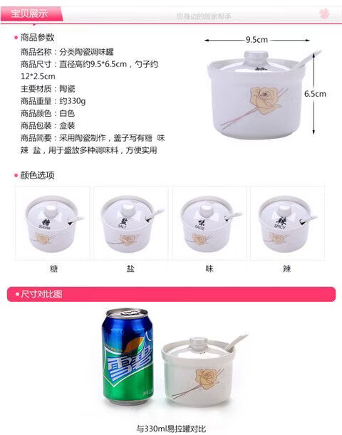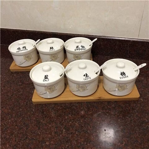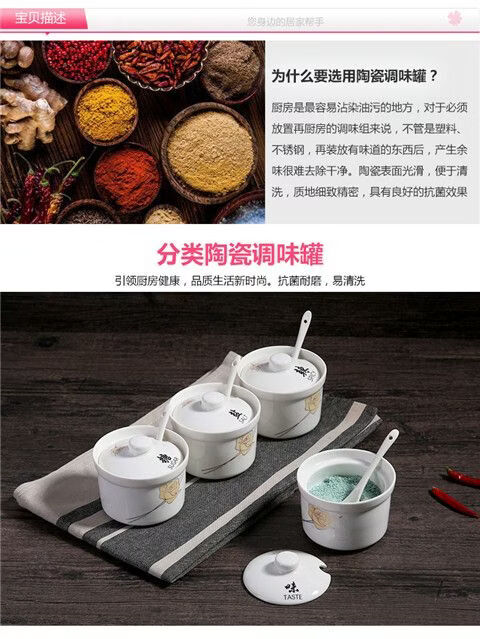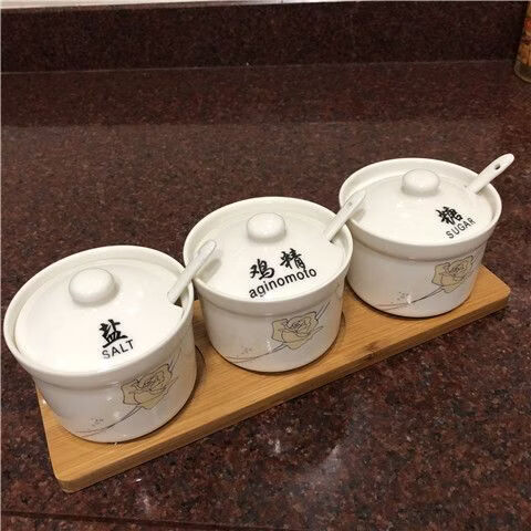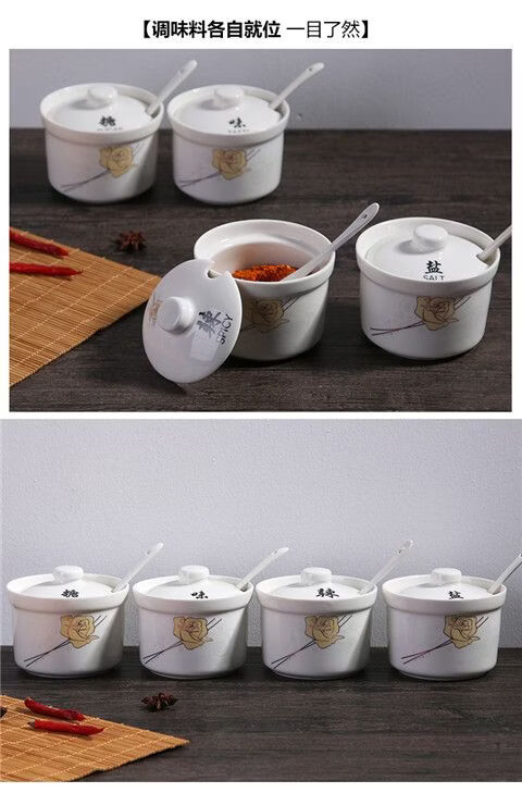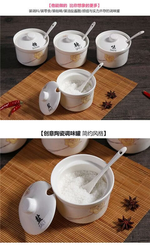 Fantasy German imported quality ceramic seasoning jar kitchen seasoning jar household salt shaker seasoning jar seasoning box chicken essence jar with spoon (approximately 250 grams)