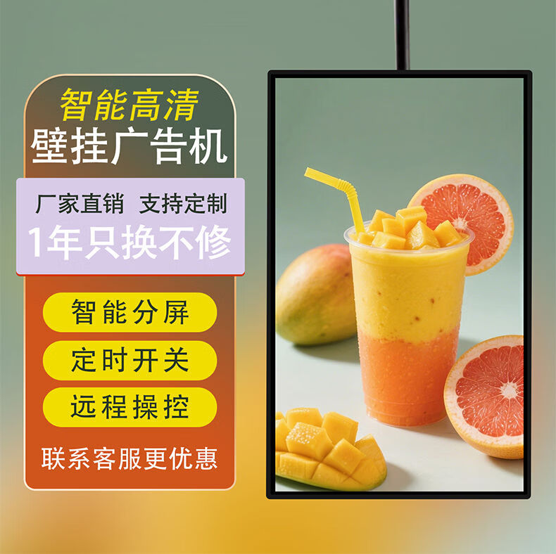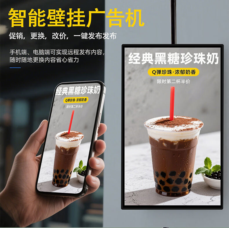 1+ catering store hotel milk tea advertising machine 32/55/65-inch display horizontal and vertical high-definition LCD smart network machine upgrade 65-inch commercial network version (hanger)