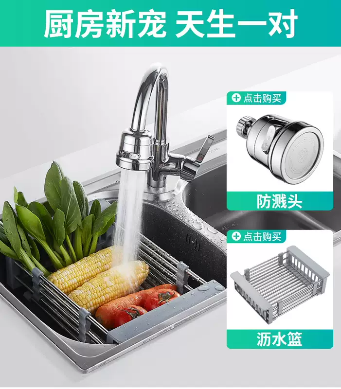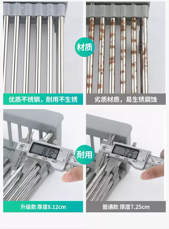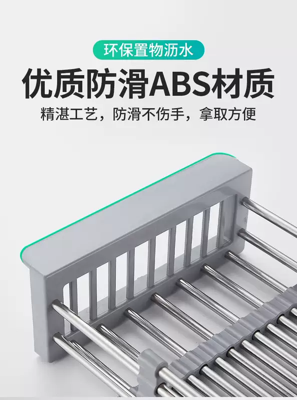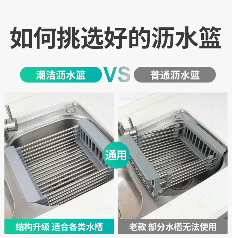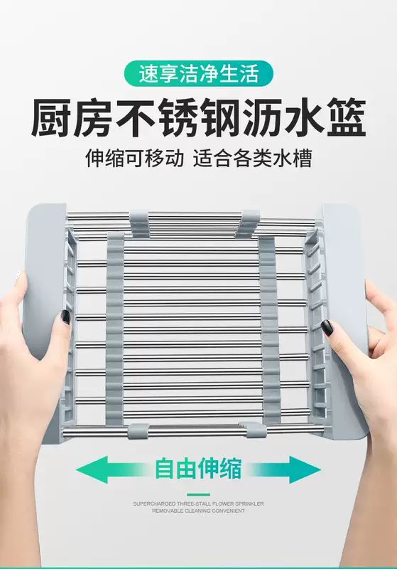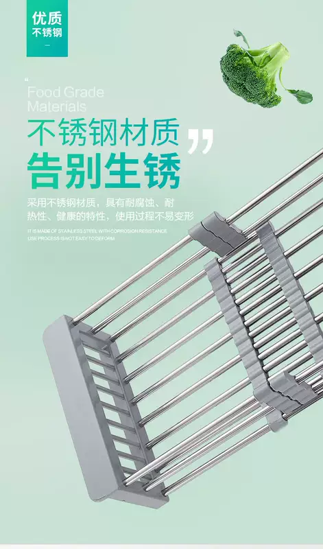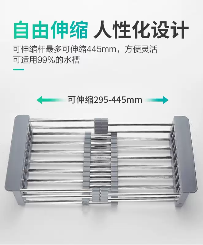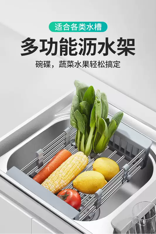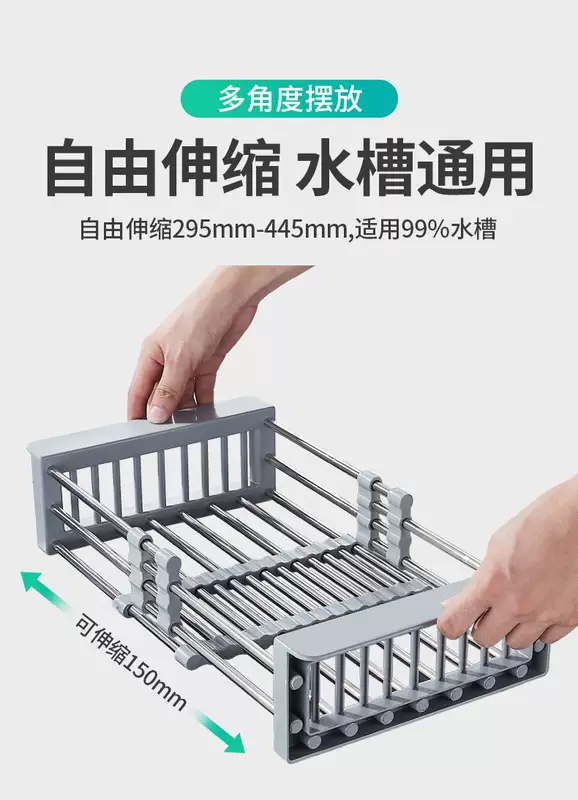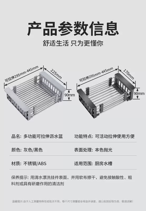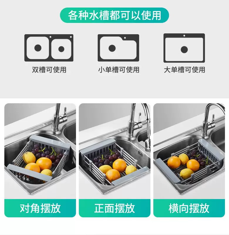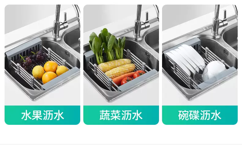 Yusenyi Bold Stainless Steel Sink Drain Accessories Drain Rack Kitchen Fruit Tableware Washing Vegetables Telescopic Drain Basket Drain Basket (Extra Large Food Grade) Elegant Black