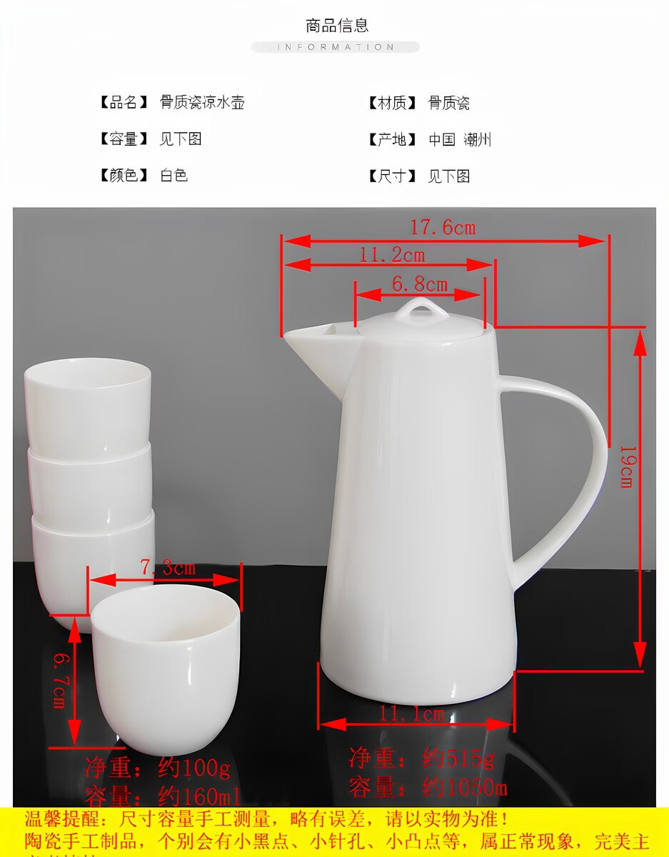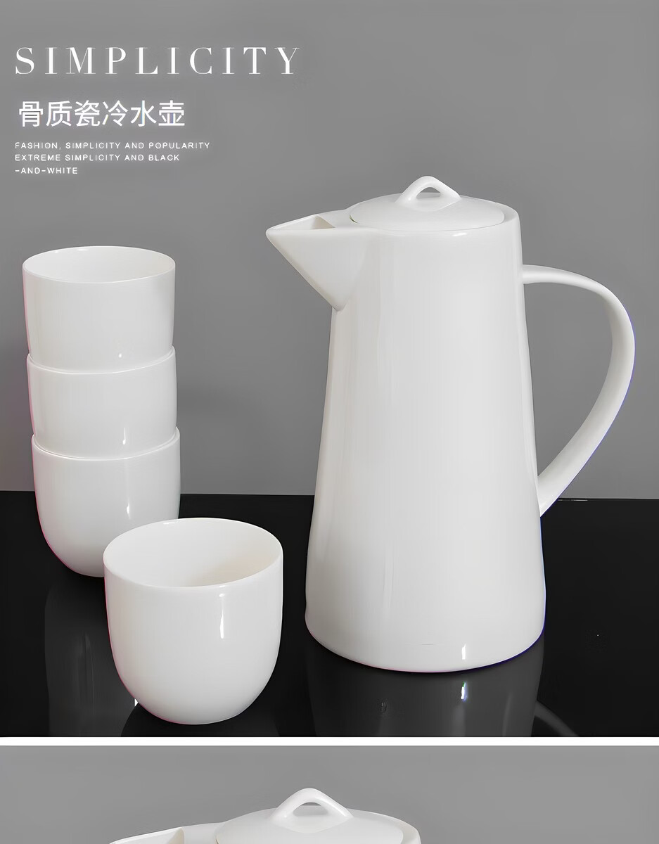Pupan pure white bone china cold kettle large capacity fruit teapot hotel home cold kettle with filter hole ceramic water set single pot 0ml