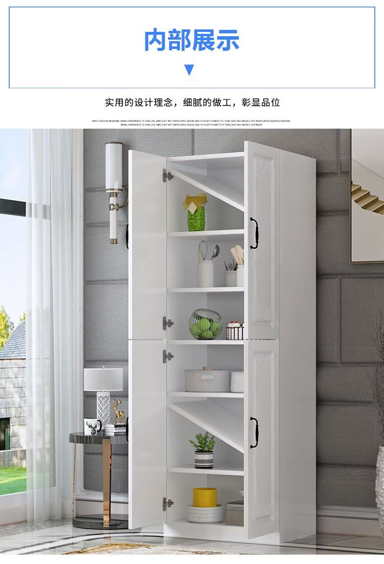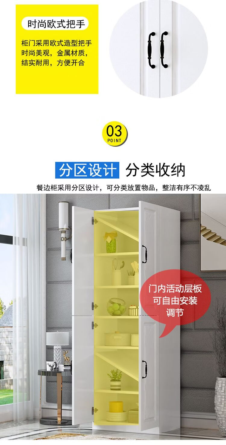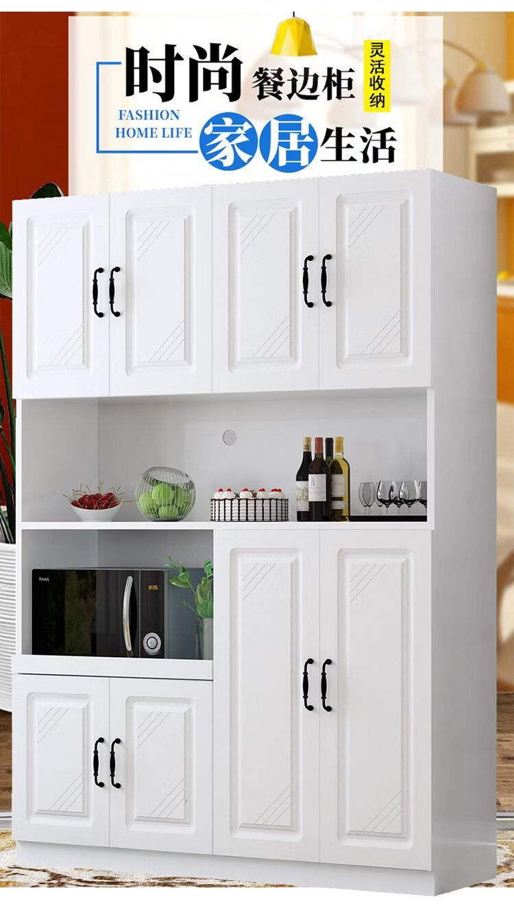 Fantasy European sideboard multifunctional kitchen cupboard wine cabinet living room wall integrated cabinet storage cabinet storage cabinet warm white 120+ European door.