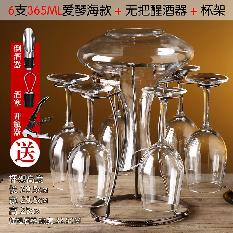 Tuojin European red wine glass set of 6 pieces with decanter for household tall glasses Aegean 365ML 2 pieces