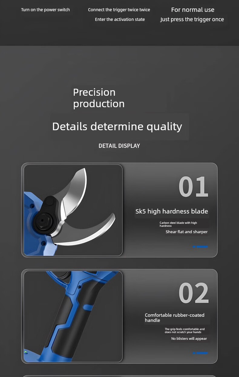 KOWSI lithium ion scissors, powerful fruit tree electric scissors, pruning scissors, garden branch electric scissors, tree single battery 5.0 cm, free luxury plastic box gift bag