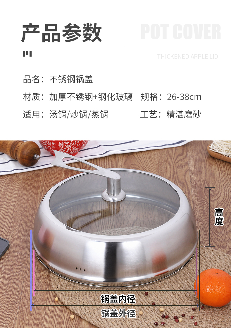 Sailotou heightening pot lid thickened stainless steel tempered glass lid household 2 wok steamer lid 0cm thickening and heightening all steel can be measured immediately