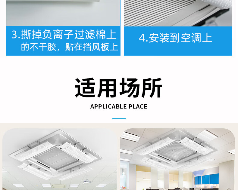 Yingtang central air conditioning windshield, air guide ceiling, air-conditioning outlet baffle, ceiling machine universal cover, upgraded version of 4 pieces, length retractable 50-70CM, equipped with negative ion filter cotton 74x15x16cm