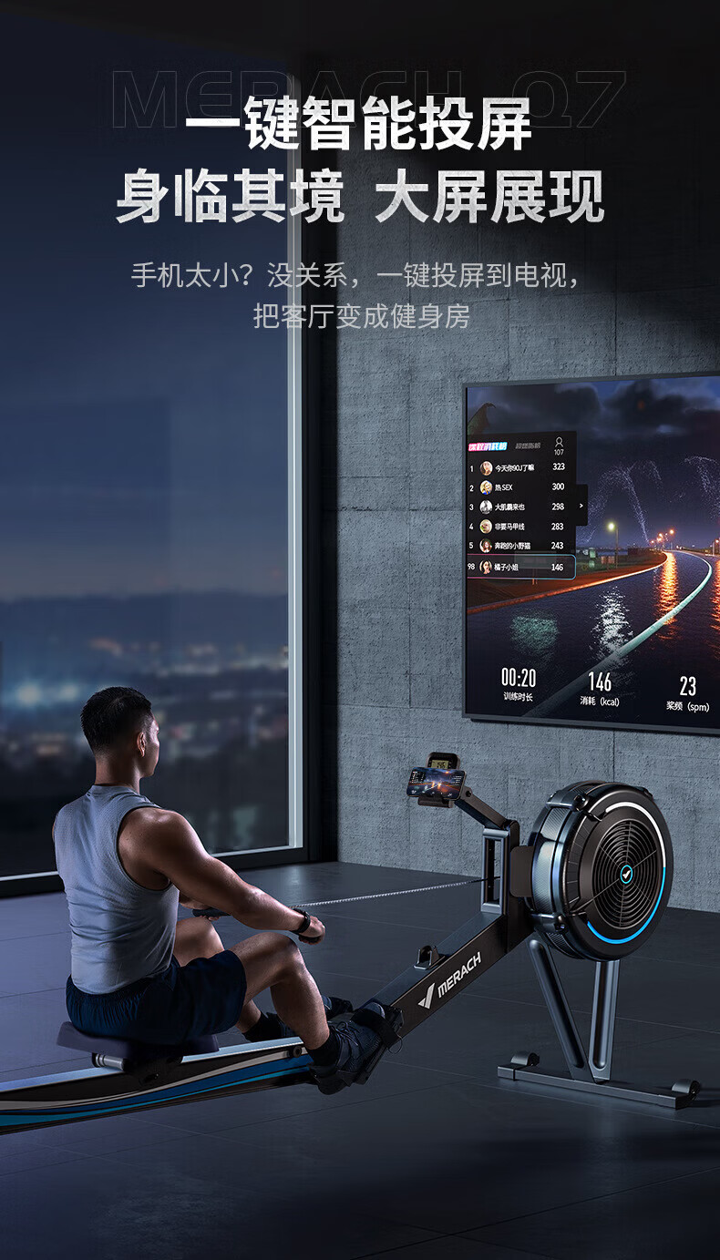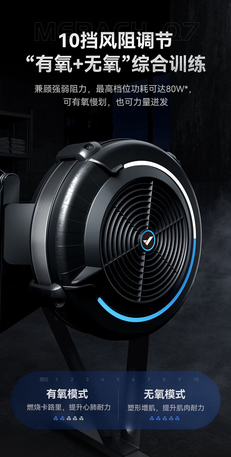 MERACH super fat-burning smart rowing machine for home and commercial use with wind resistance black