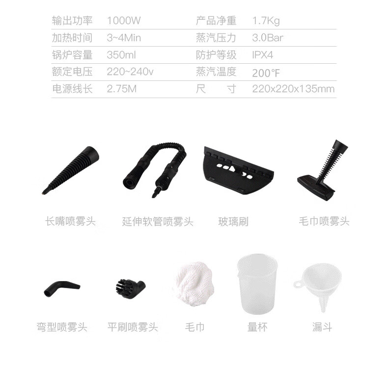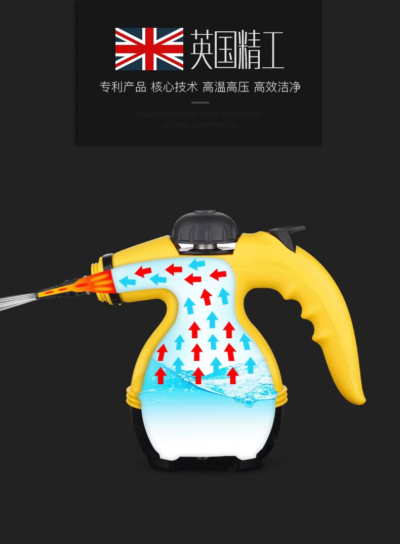 Yonghuan household high-pressure steam cleaner high-temperature multi-functional handheld hood cleaning tool host (9 accessories + 4 copper wire brushes)