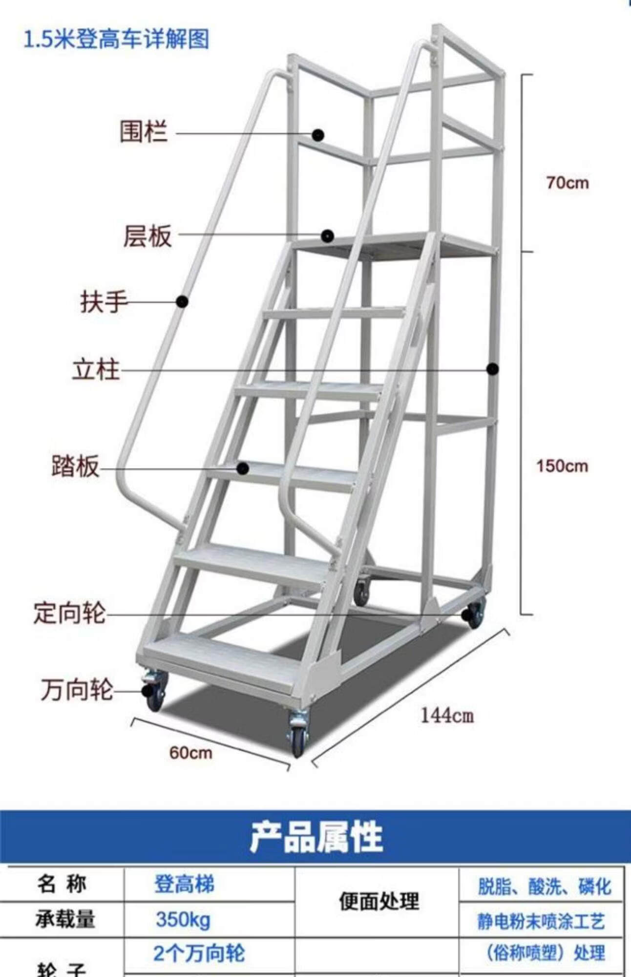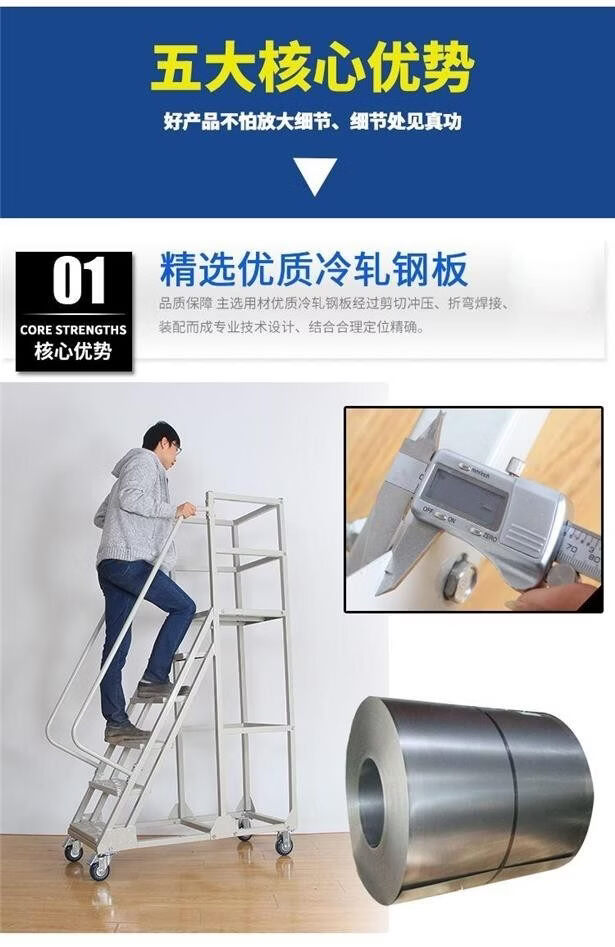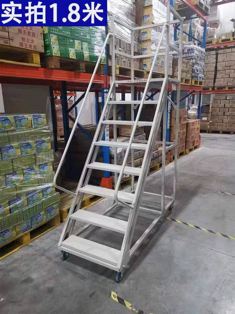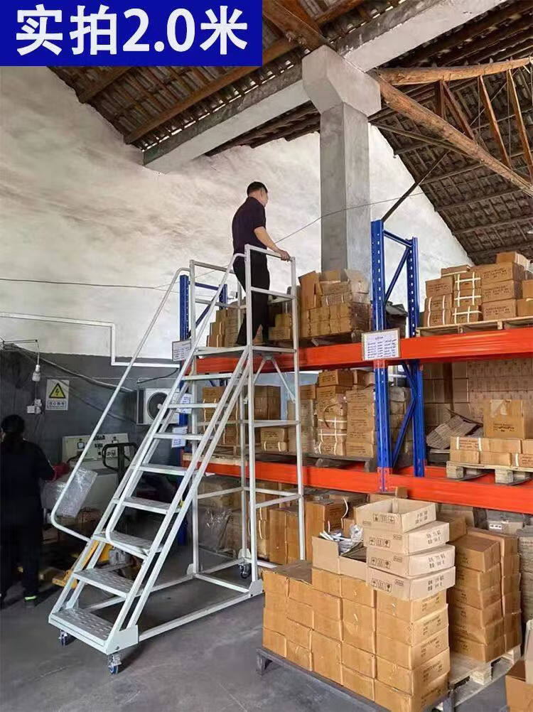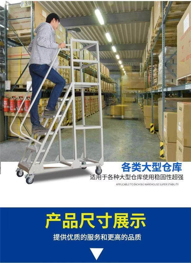 Movable platform climbing ladder warehouse supermarket warehouse climbing car detachable tally pickup ladder off-white platform 4.5 meters above the ground 1.2 meters wide