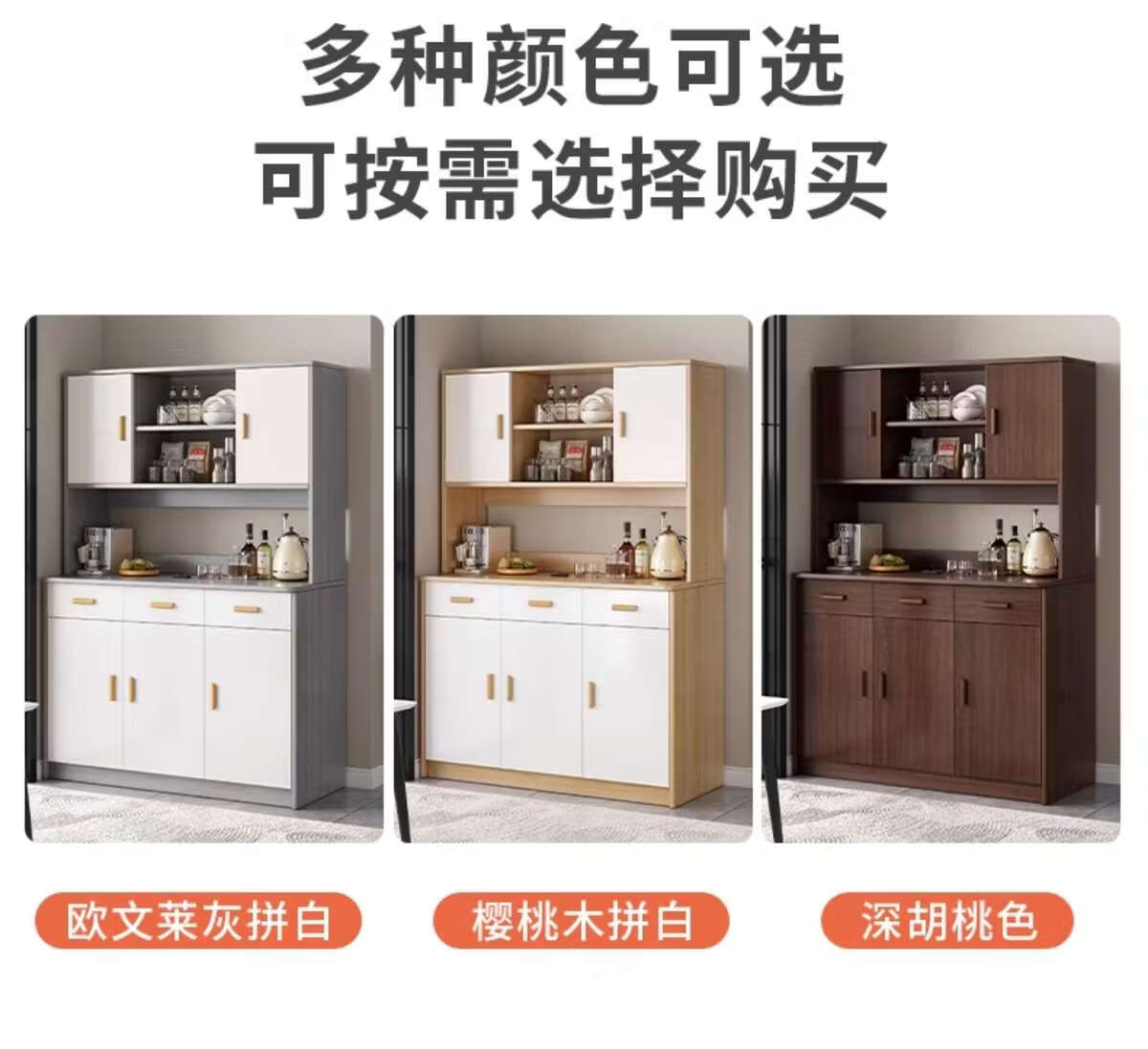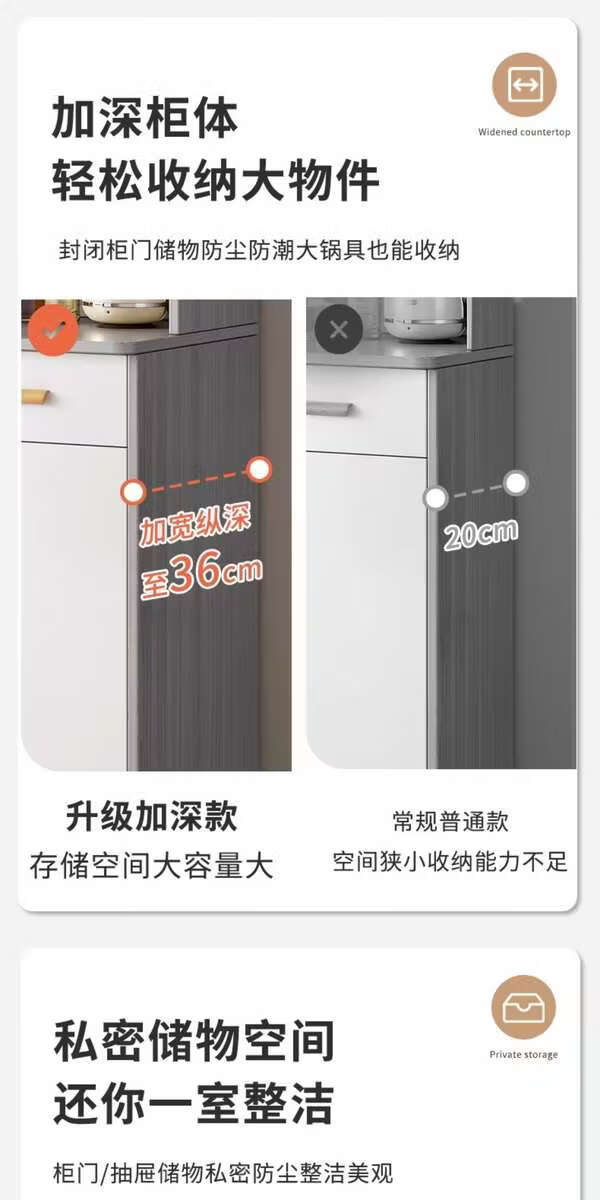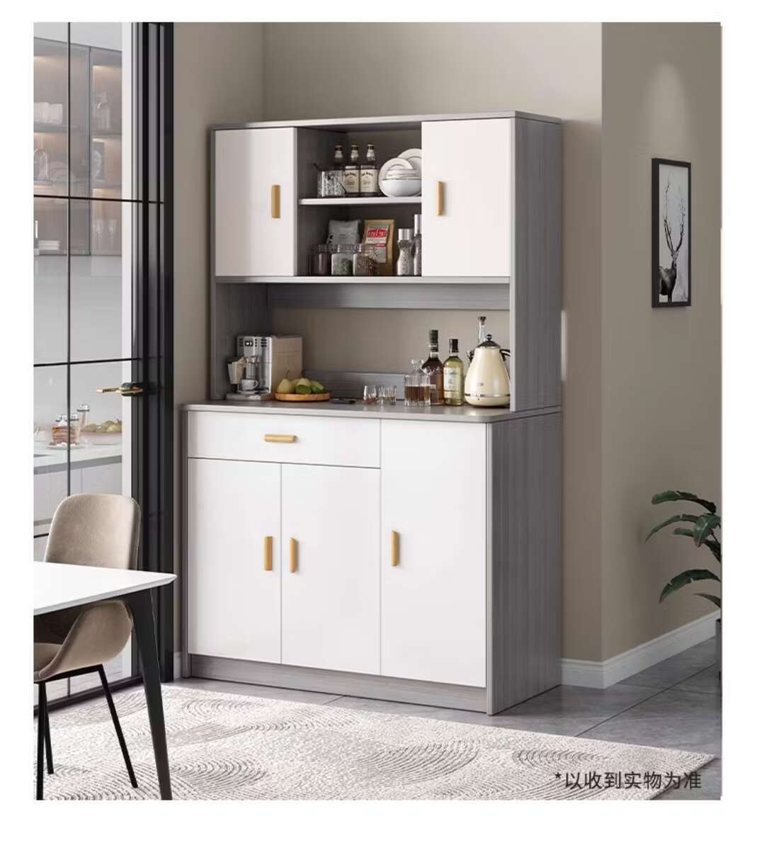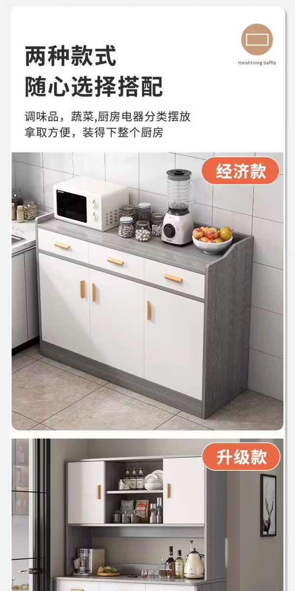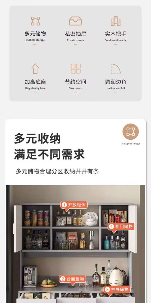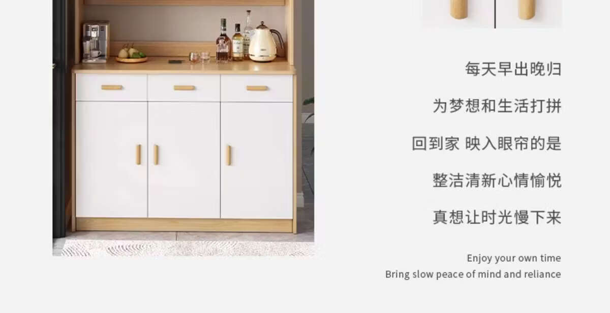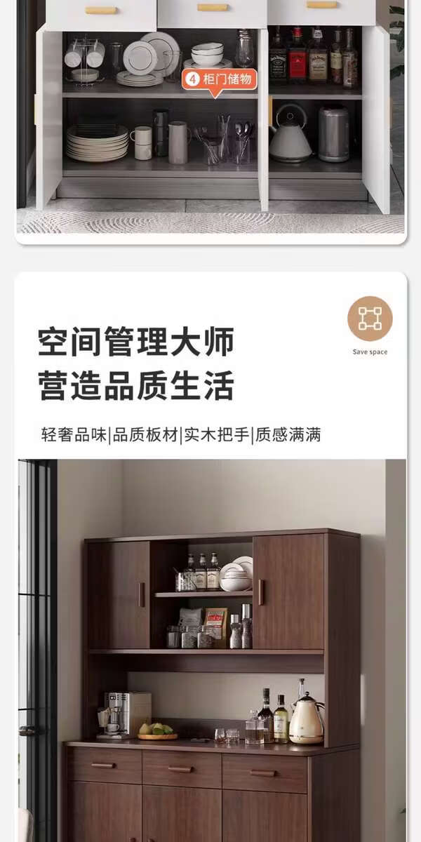 Pupan living room sideboard against the wall integrated small apartment storage cabinet kitchen multi-functional storage rack cabinet wine cabinet tea cabinet Heightened upgrade with shelf version dark walnut 100CM