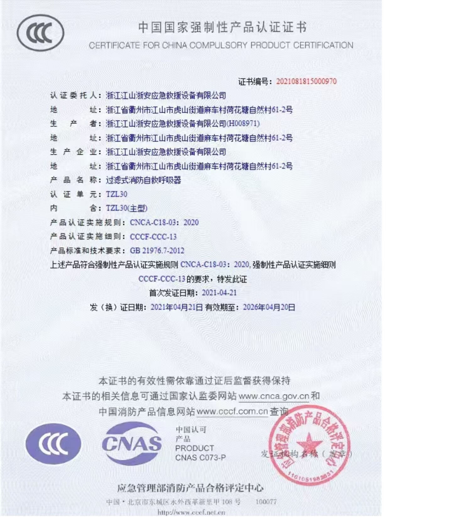 Wenshiou 3C national standard TZL30 filtered fire self-rescue caller fire escape anti-gas fire mask Zhe'an advanced mask TZL30A