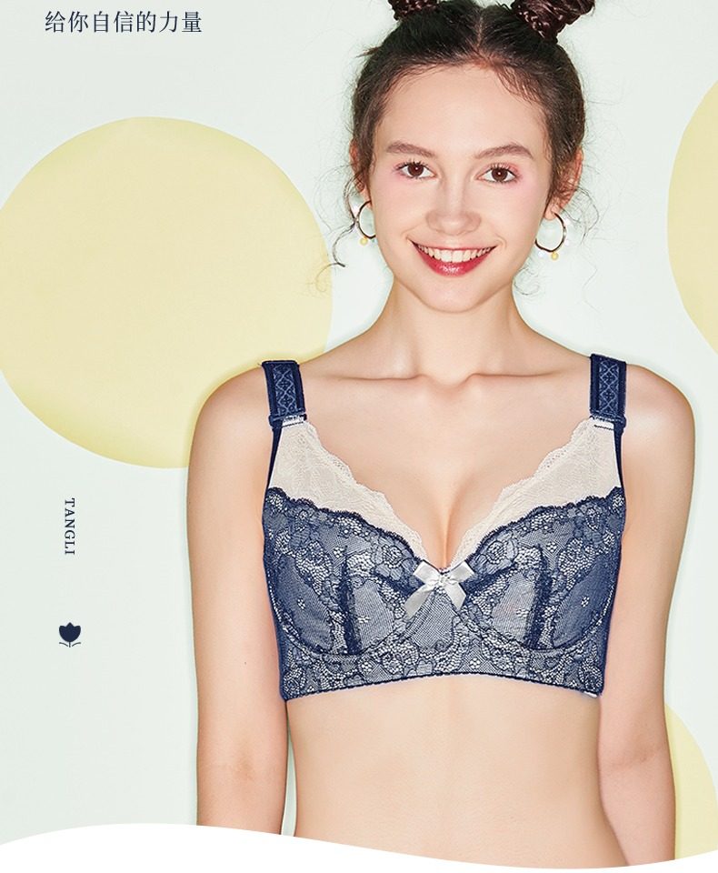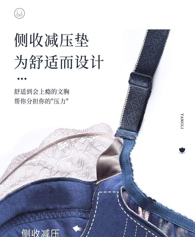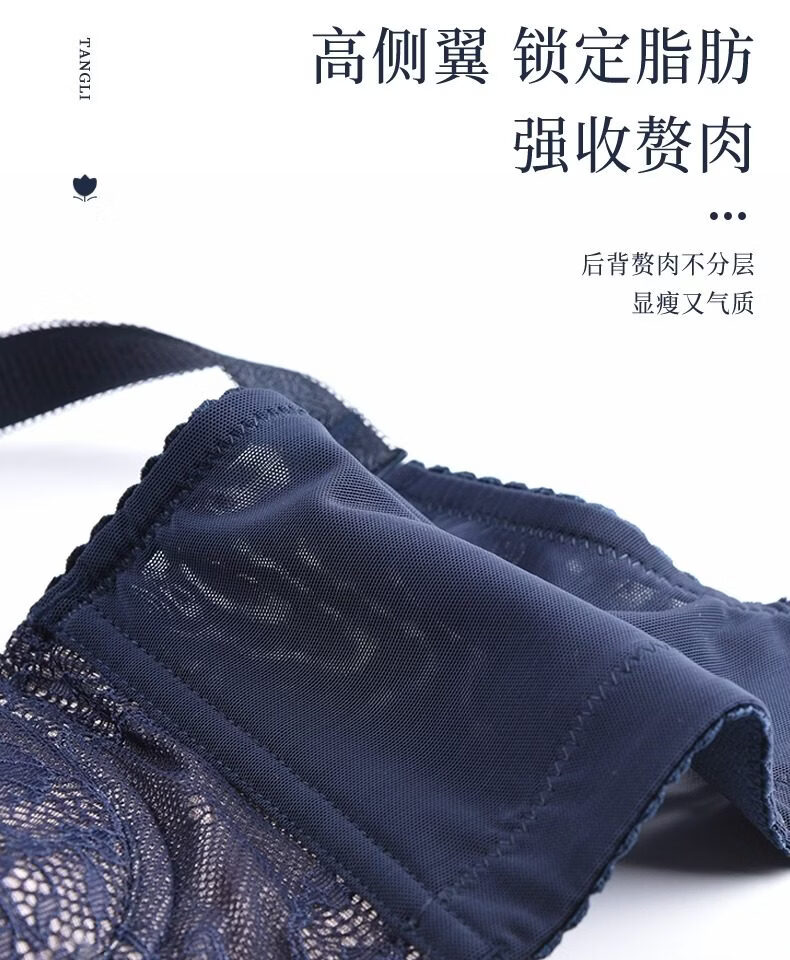 Sugar grain large size underwear set for obese mm, big breasts appear smaller, push-up, auxiliary breasts, anti-sagging, adjustable full cup bra, thin Morandi gray suit 70B-L