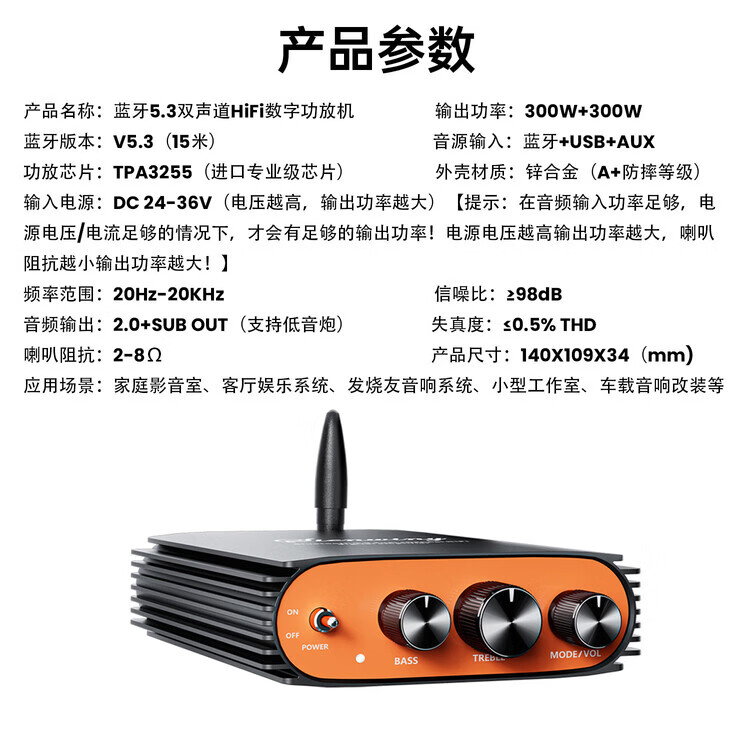 DC24-36V YS-KL5 Bluetooth 5.3 dual-channel HiFi digital power amplifier 300W+300W power amplifier board 300W+300W dual-channel European regulations