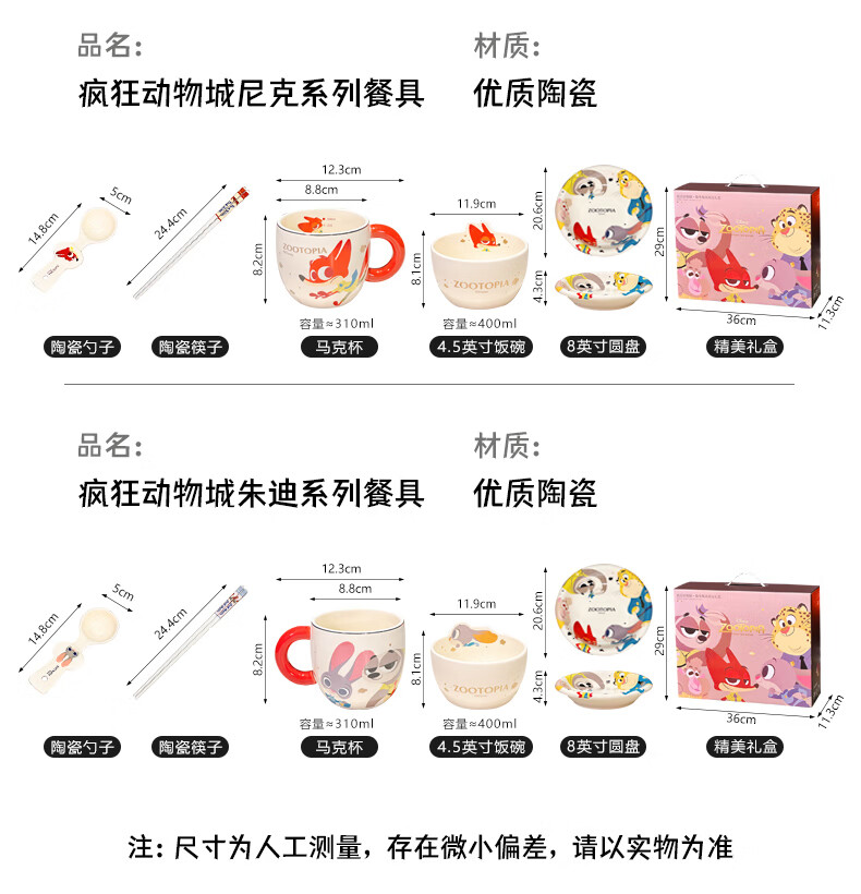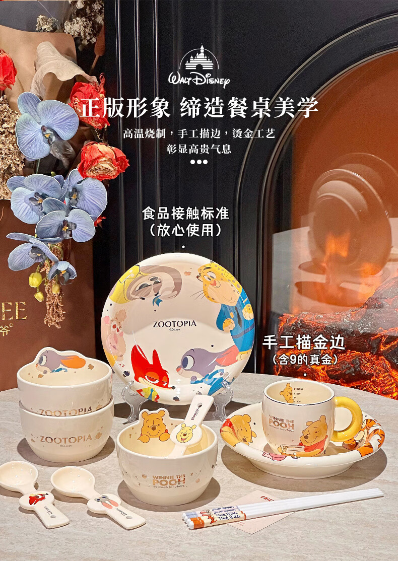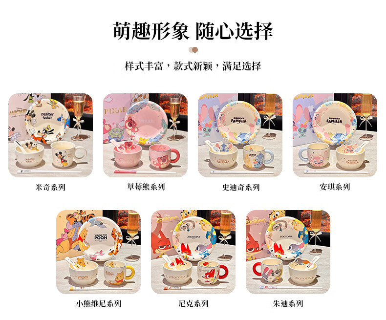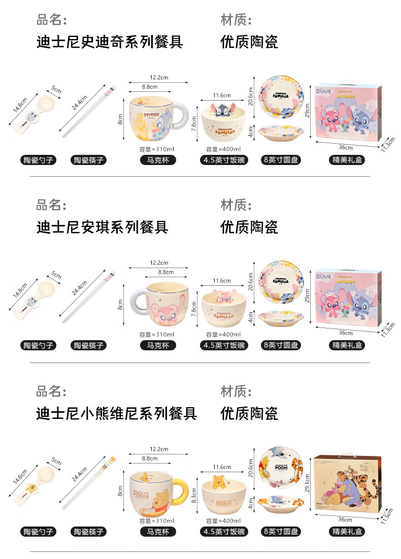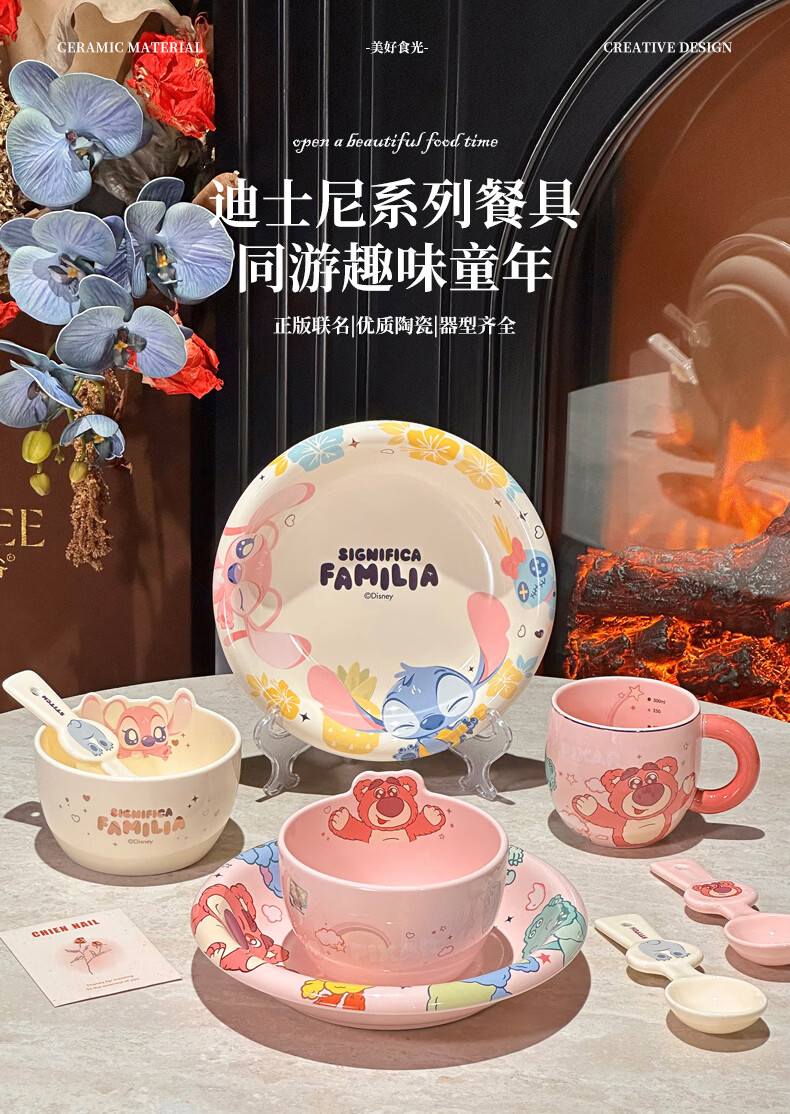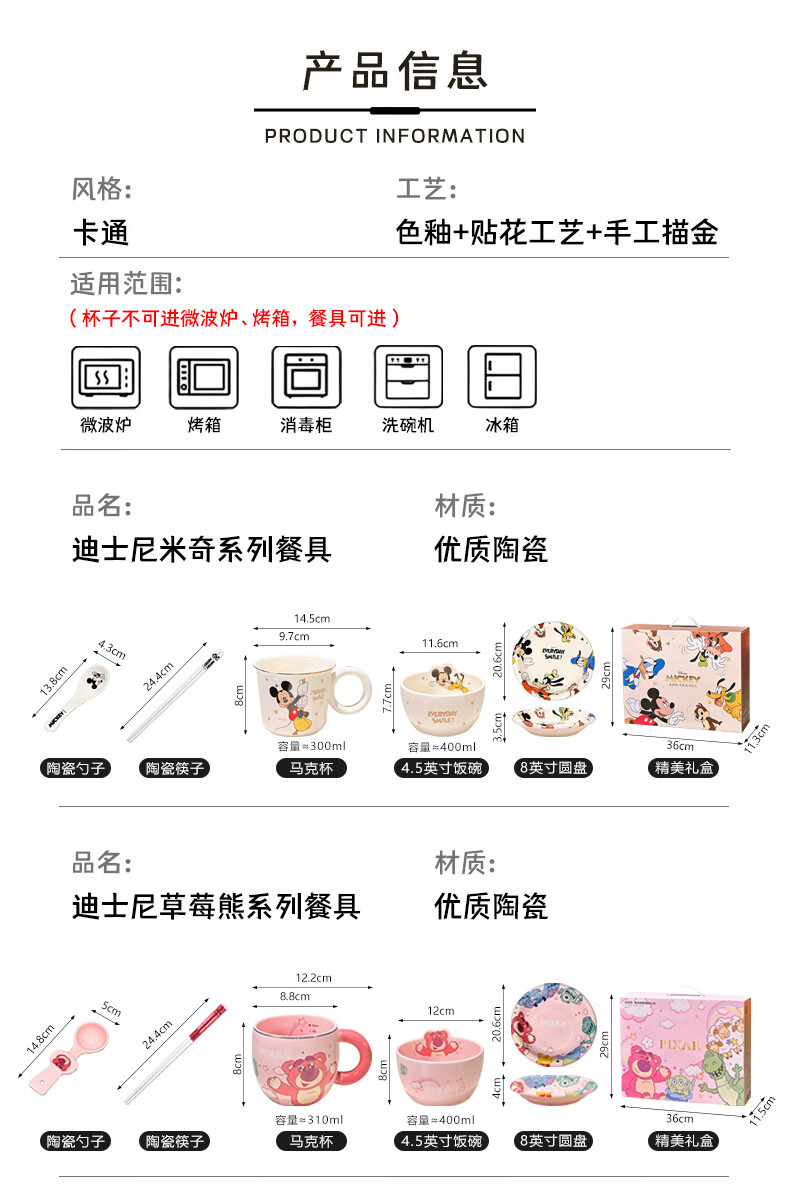 Xibaisheng cute ceramic tableware set for one person, high-looking bowls for girls and children, bowls, plates and chopsticks set for one person, strawberry bear, 5-piece gift set for one person, 2063