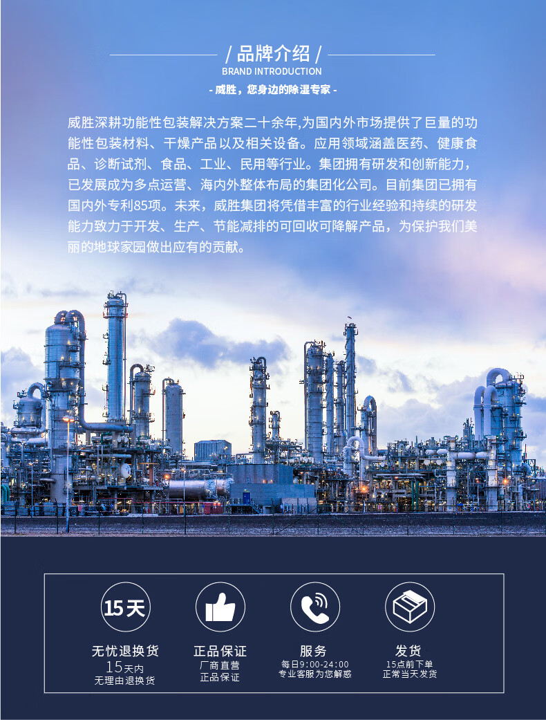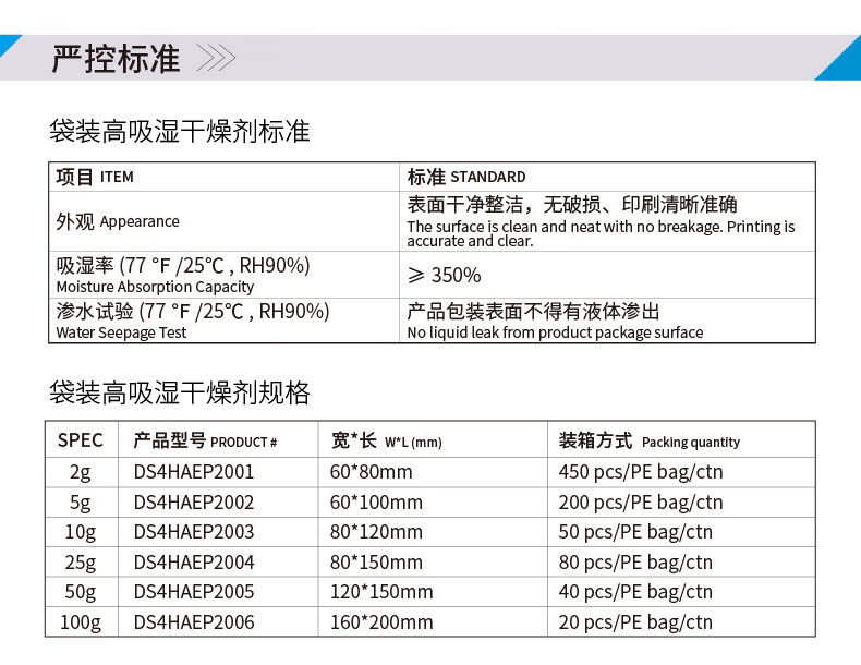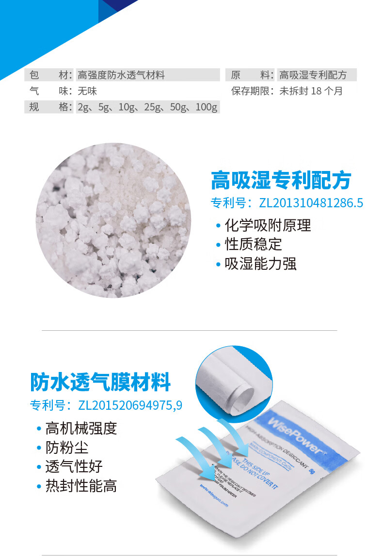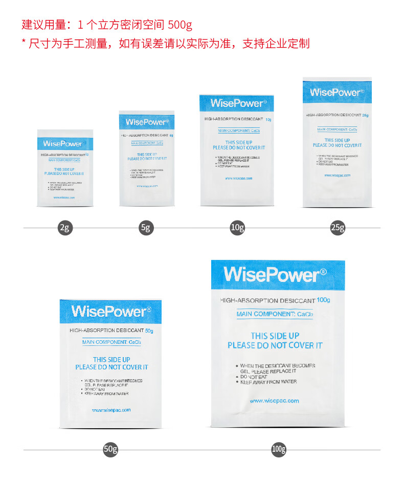 WISEPAC CW 2g/5g/10g/25g/50g/100g high moisture absorption desiccant industrial container shipping container transportation and other anti-mold and moisture-proof SGS certification 25g*80 pack