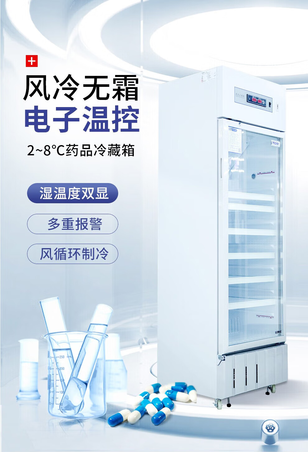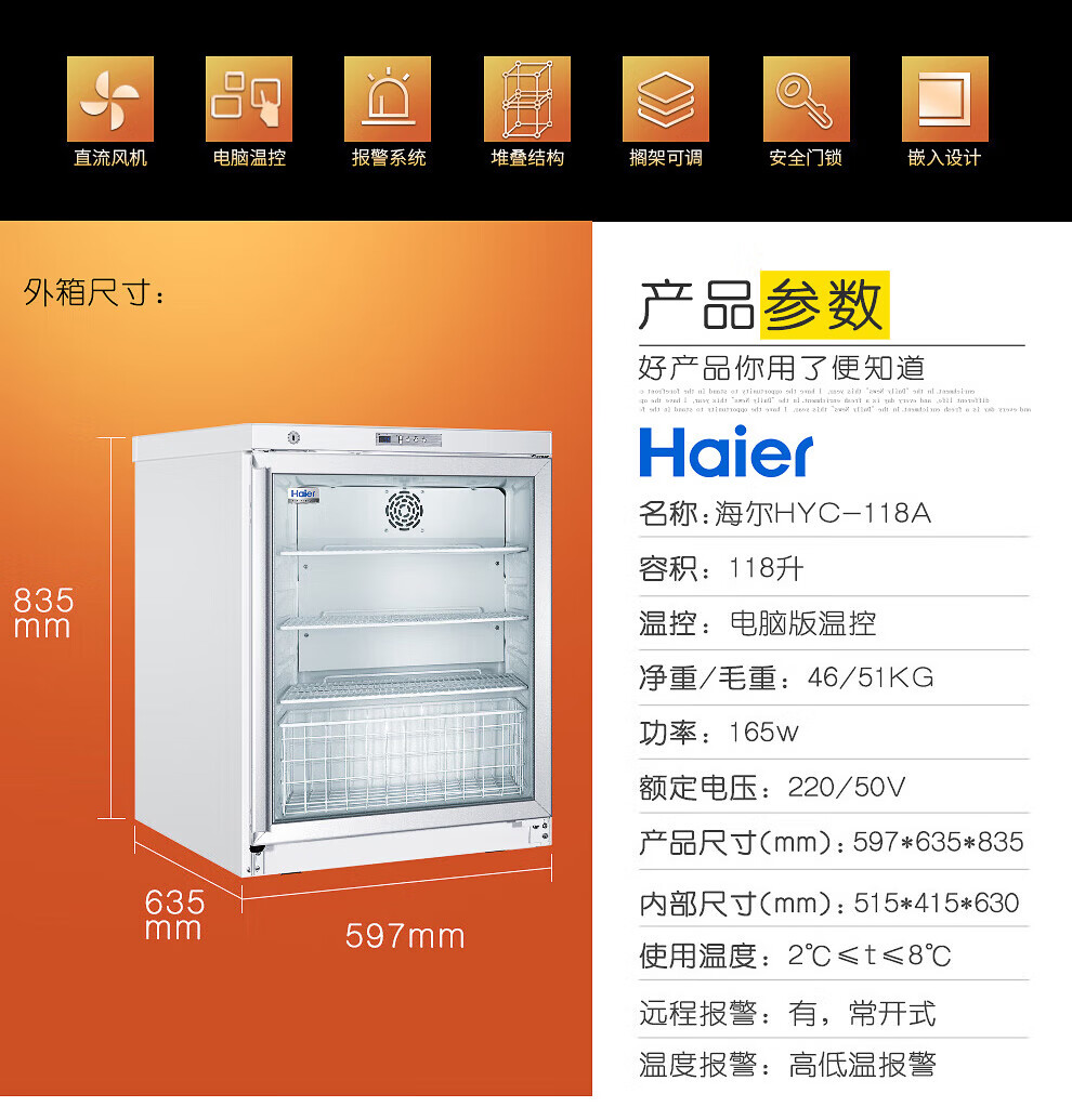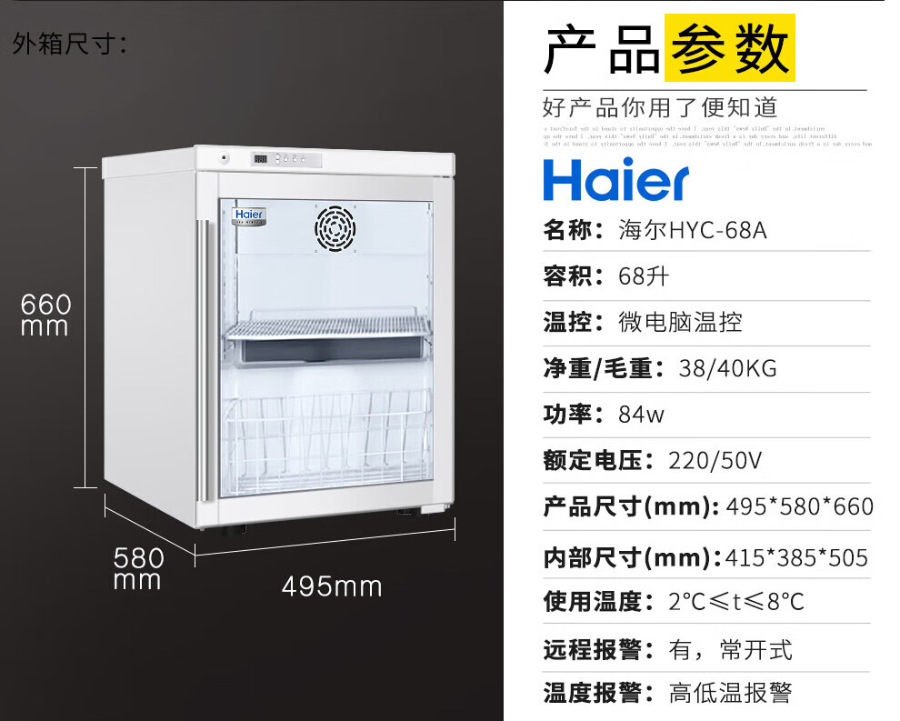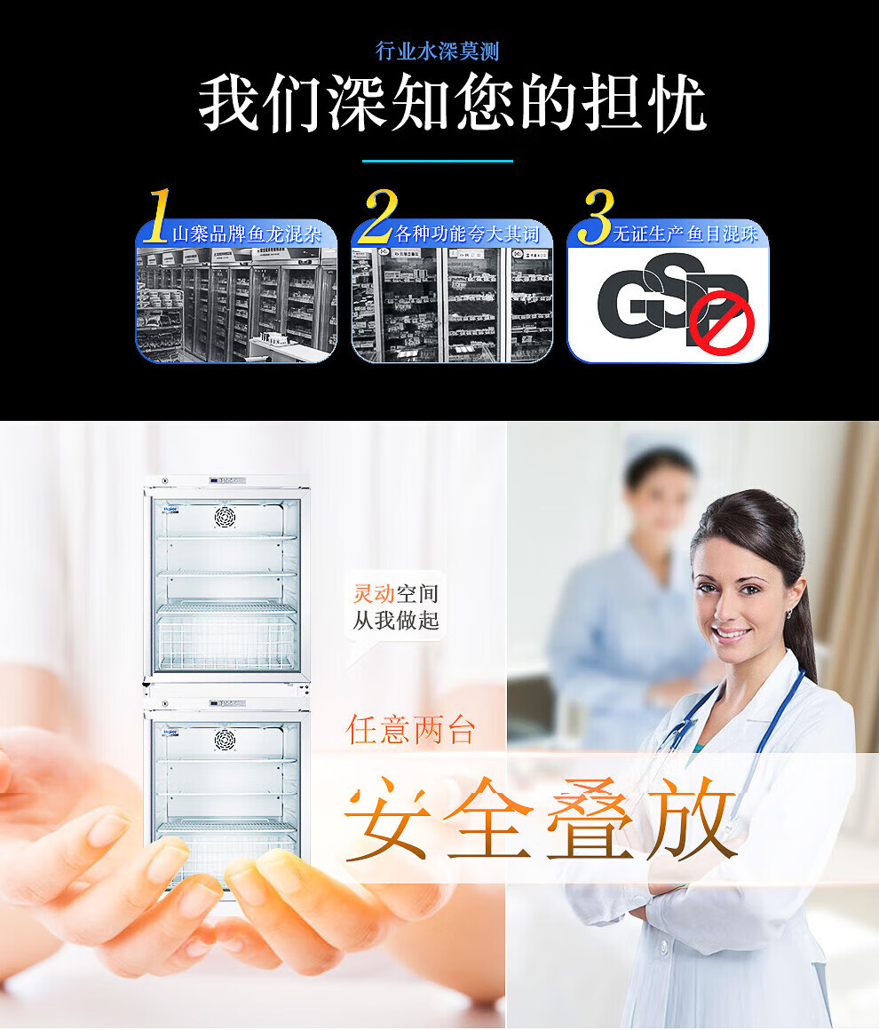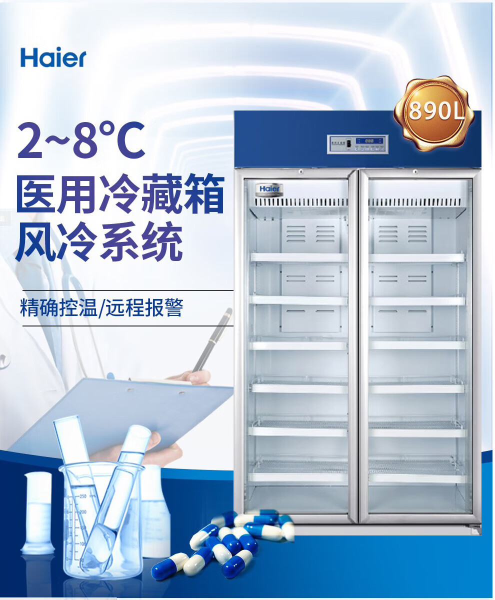 Haier medicine cool cabinet medical refrigerator medical refrigerator pharmacy pharmacy display cabinet vertical refrigerator clinic GSP certified medicine cabinet upper refrigerated lower frozen medicine storage box HYCD-471FD